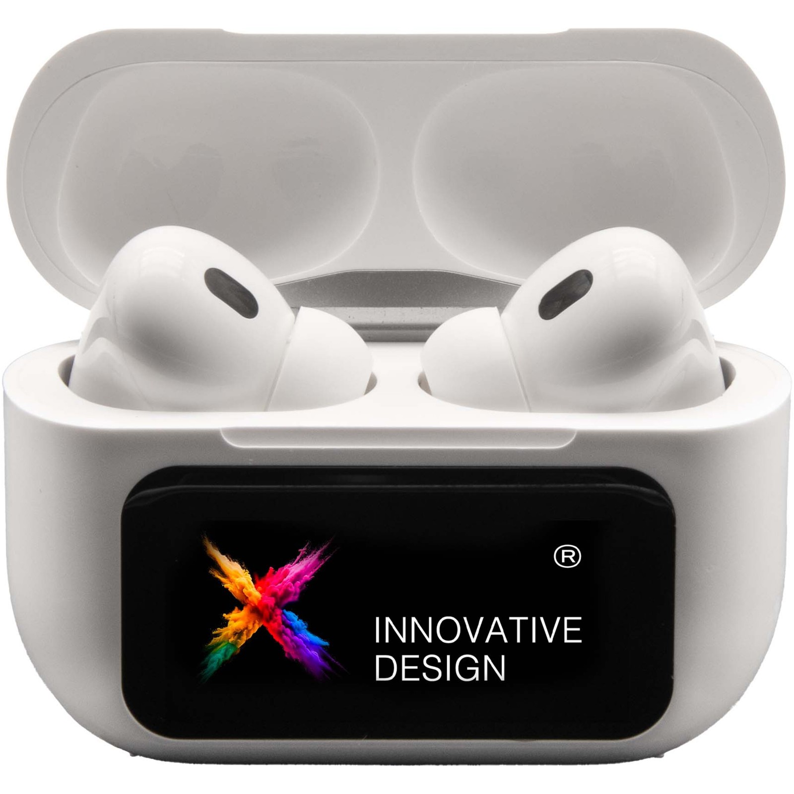 Con questi auricolari wireless Bluetooth 5.4/3.0, l'esperienza audio è superiore. Sono dotati di riduzione attiva del rumore (ANC) e di una custodia di ricarica con touchscreen interattivo, che offre funzioni come giochi, musica e aggiornamenti meteo. Presentano un'autonomia di 4-5 ore con una singola carica e la custodia di ricarica può ricaricare gli auricolari 3 volte. Tempo di ricarica degli auricolari: 3,5 ore. Tempo di ricarica della custodia: 1,5 ore. Dimensioni dello schermo: 1,47". Risoluzione dello schermo: 320 x 172. Dotati di un cavo USB-C in PET riciclato e forniti in una confezione regalo in cartone riciclato. La custodia non verrà stampata, il logo sarà visualizzato sullo schermo digitale.