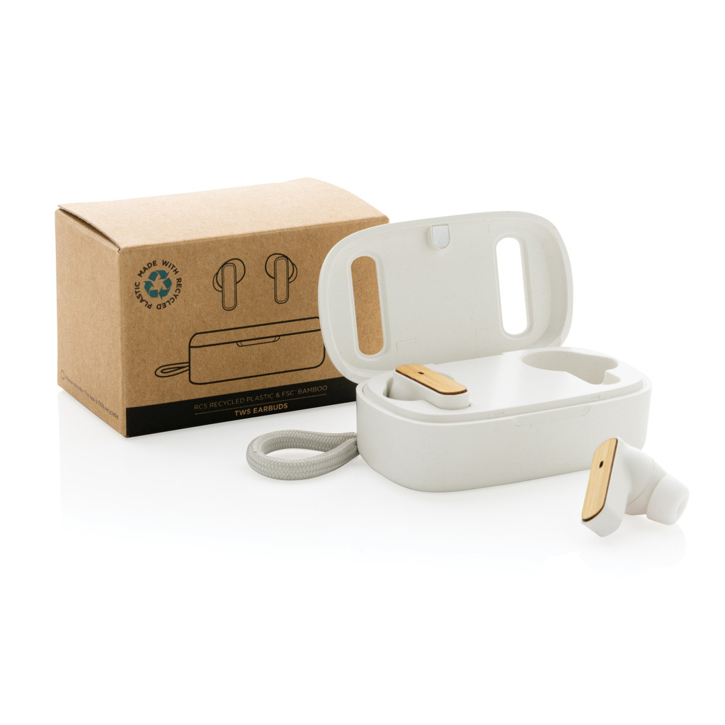 Auricolari TWS in plastica RCS e bambù - Bianco