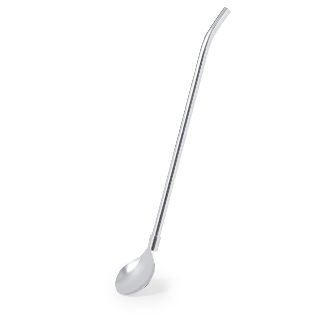 Pratico agitatore in acciaio inox con cannuccia. Con il suo design elegante e funzionale, questo accessorio è indispensabile per le bevande calde o fredde. Cannuccia integrata per bere facilmente e pratico cucchiaio all'estremità inferiore. Presentato in un sacchetto individuale.