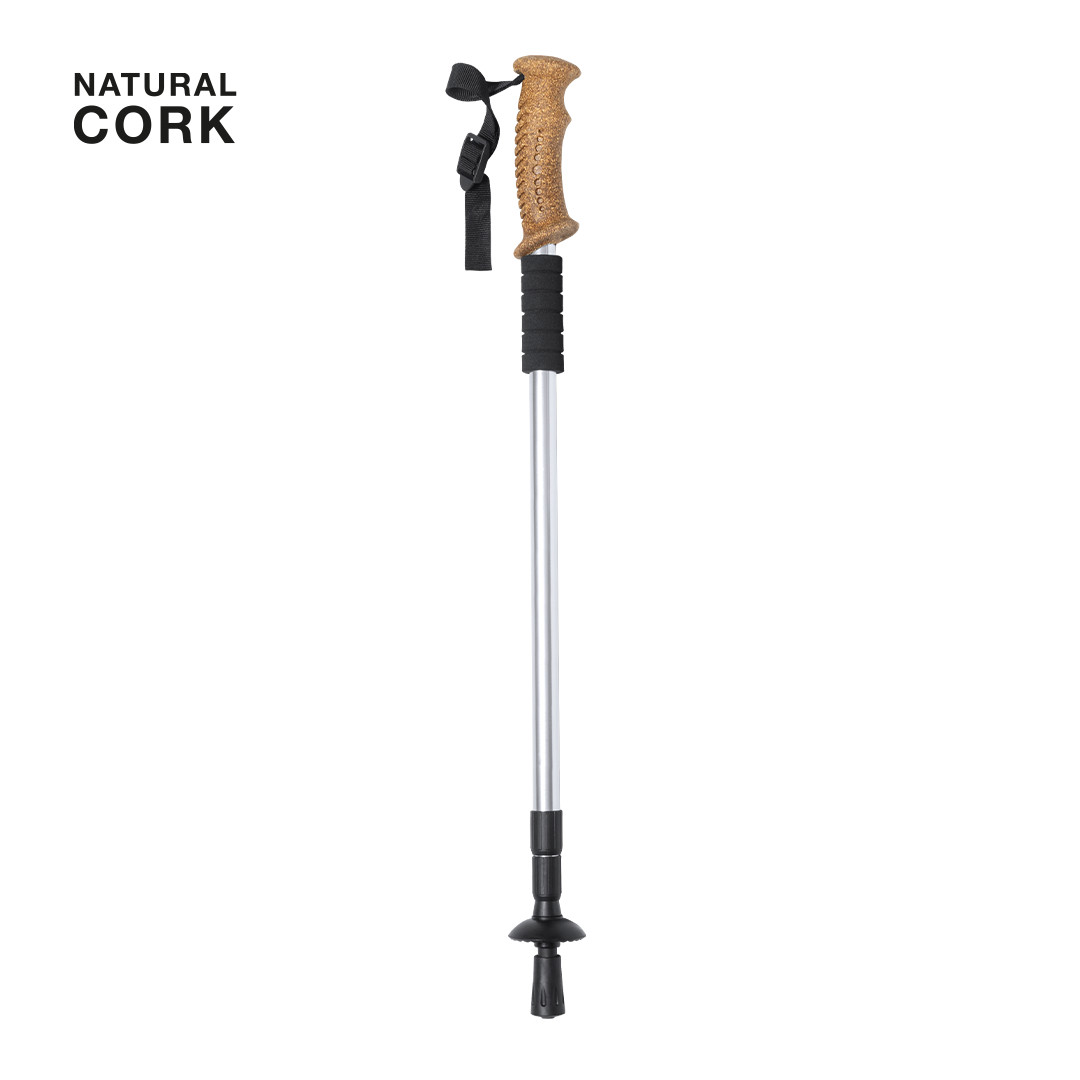 Bastone da passeggiata sportiva pieghevole e telescopico. Realizzato in alluminio resistente, con comoda impugnatura ergonomica in sughero naturale e accessorio in schiuma per appoggiare le mani. Meccanismo di ammortizzazione, con rinforzo antiscivolo allestremità a contatto con il suolo e cinghia di sicurezza regolabile. Regolabile in altezza, include un accessorio per la neve e viene presentato in una custodia per il trasporto in colore naturale, con tracolla per un facile trasporto e chiusura in colore nero. Pieghevole. Altezza Regolabile. Antishock. Accessorio Neve. Custodia T.N.T.