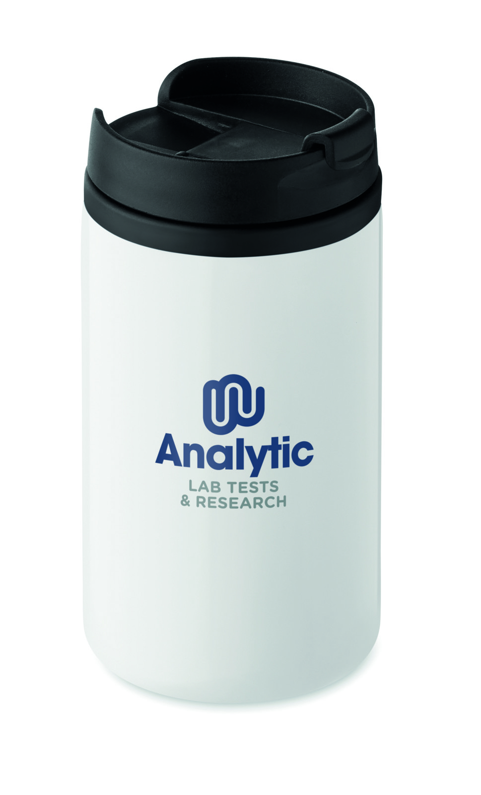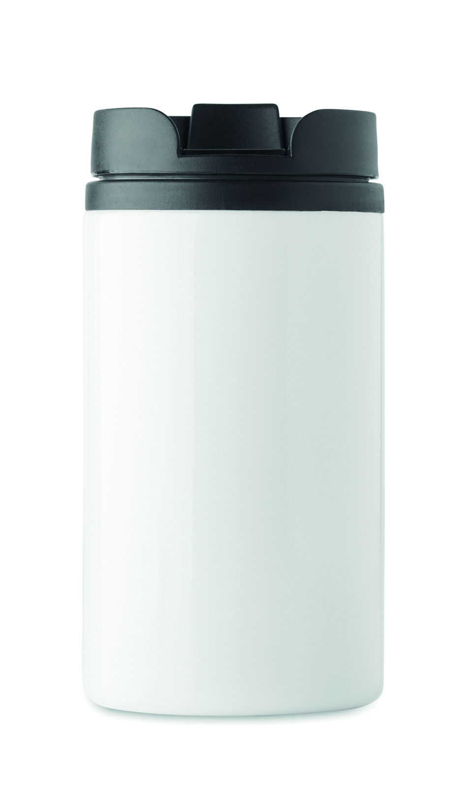 Bicchiere doppio strato in acciaio inossidabile con chiusura ermetica. Interno in PP. Capacità 250 ml.Antigoccia.