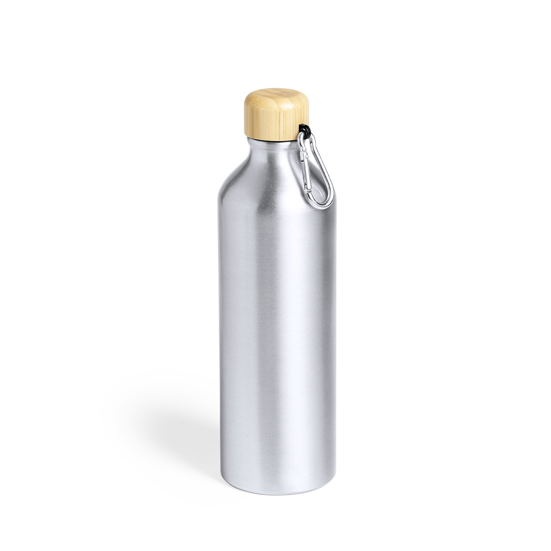 Borraccia della linea natura con capacità di 800 ml. Corpo in alluminio con finitura opaca e coperchio in bambù con moschettone in tinta per un facile trasporto. Senza BPA e presentata in unattraente scatola di eco-design. 800 ml