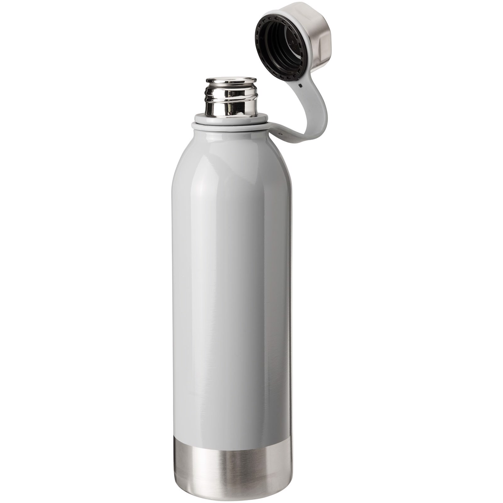 La borraccia sportiva Perth in acciaio inossidabile da 740 ml non è solo una festa per gli occhi su qualsiasi scrivania, ma anche ideale da usare durante una passeggiata nei boschi. Il tappo a vite in acciaio inossidabile con comodo occhiello in silicone rende la borraccia facile da portare sempre con te. Inoltre, il tappo non si perde mai. La combinazione di colori bianco e argento dà alla bottiglia un look estremamente elegante.