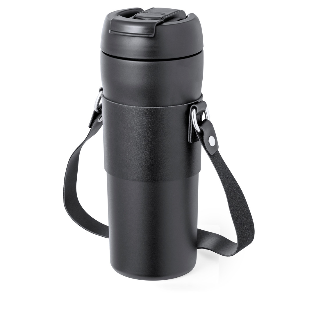 Elegante borraccia termica da 700 ml, realizzata in acciaio inox a doppia parete. Tappo a vite originale con dispenser nel coperchio e beccuccio per cannuccia inclusi. Con maniglia per il trasporto e impugnatura in similpelle abbinata. Presentata in una scatola di design kraft individuale. 700 ml