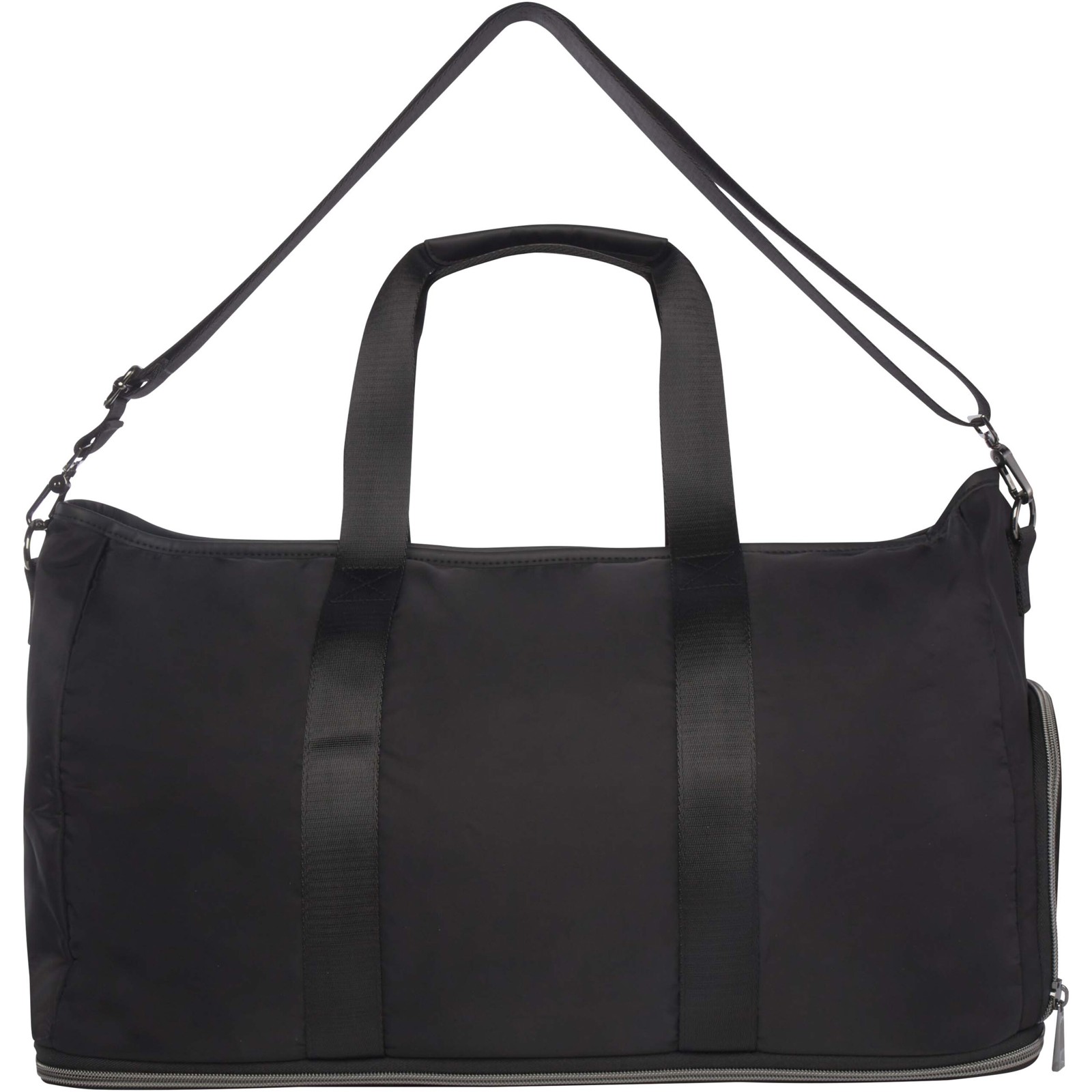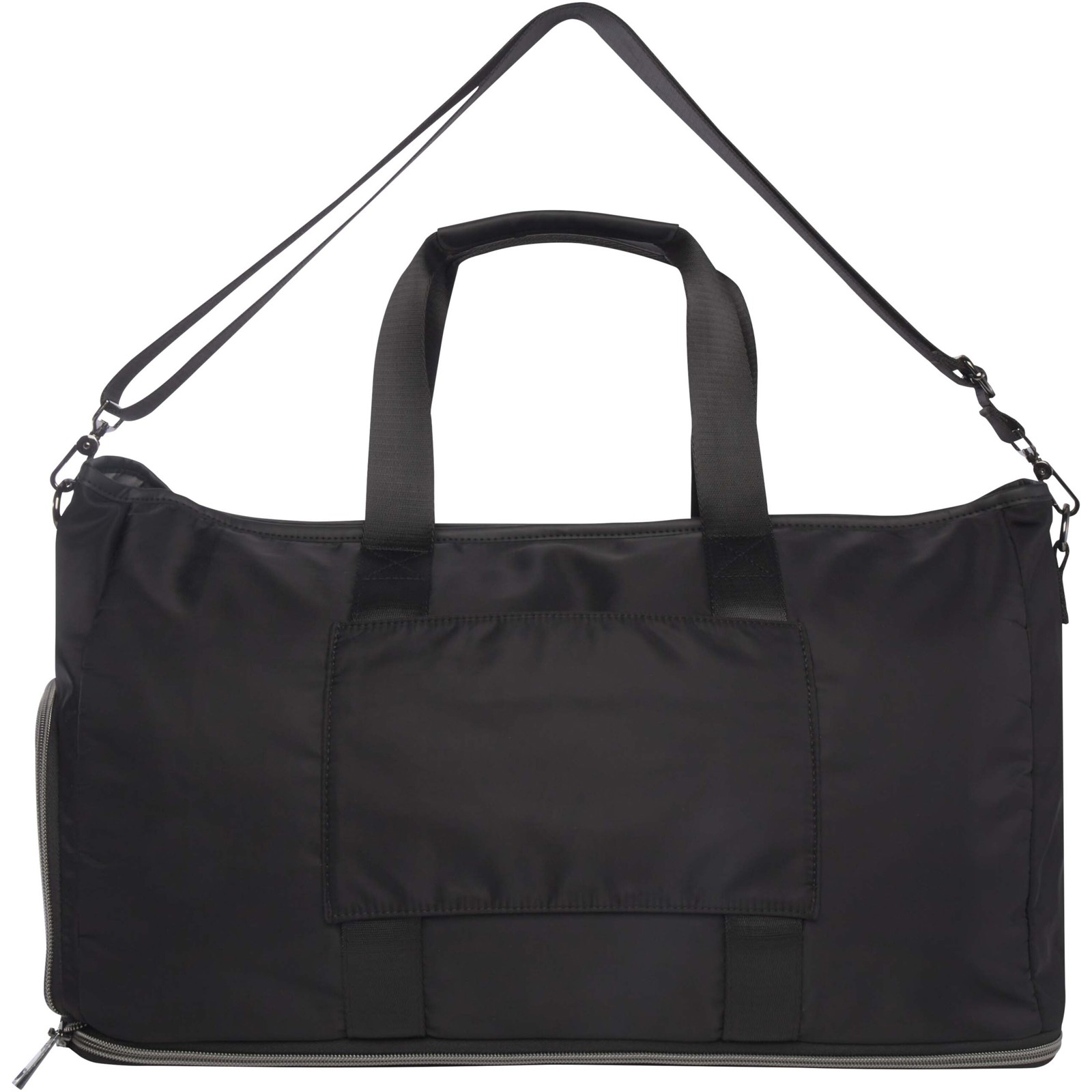 Il borsone espandibile Rhine si trasforma facilmente e con stile in svariate occasioni, grazie al design elegante e alla versatilità. Realizzato in nylon riciclato di alta qualità, presenta una morbida fodera in PET riciclato ed elementi in pelle PU di prima qualità. Il borsone è dotato di uno spazioso scomparto principale con un'ampia tasca in TPU a prova di perdite, 2 tasche, uno scomparto dedicato per le scarpe, una tasca nascosta sicura sul retro (che serve anche per agganciarlo a un trolley) e spallacci removibili e regolabili per il massimo comfort. Ciò che distingue questo borsone è lo strato espandibile, che può essere esteso fino a una capacità di 42 litri. Capacità: 35-42 litri. Resistenza fino a 20 kg di peso. Senza PVC.