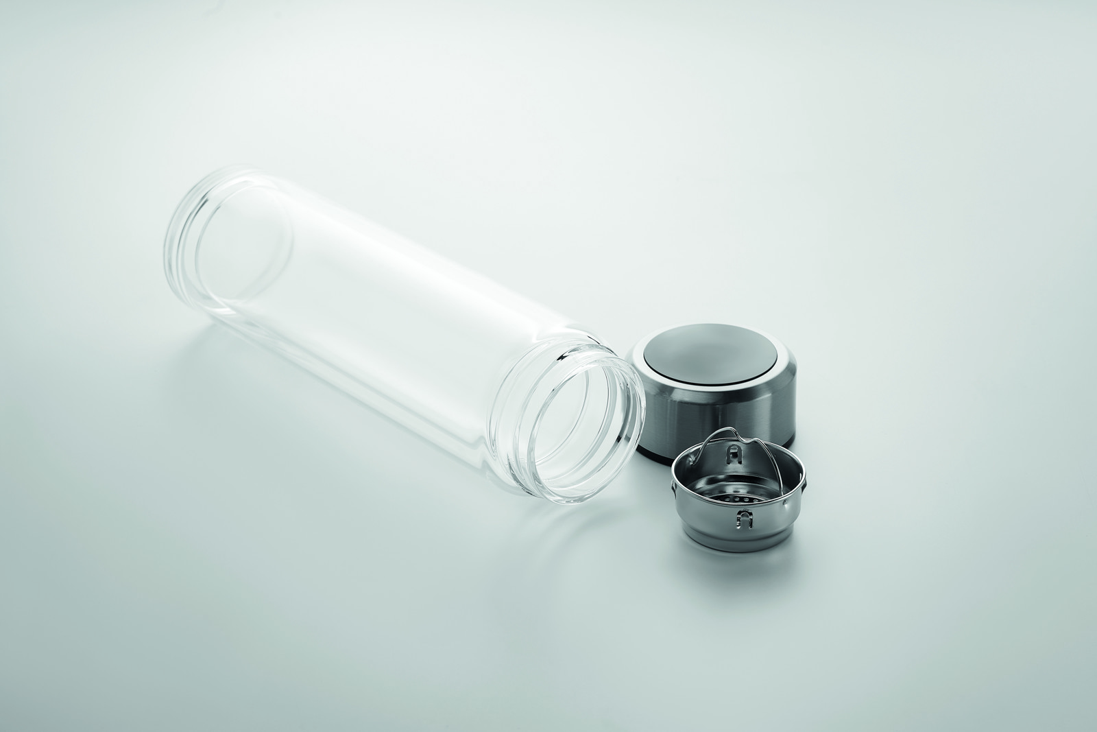 Thermos in vetro borosilicato doppio strato. Termometro touch con LED incorporato sul tappo e infusore per il thè interno. 1 batteria CR2032 inclusa e sostituibile. Salvagoccia. Capacità: 390ml.Antigoccia.
