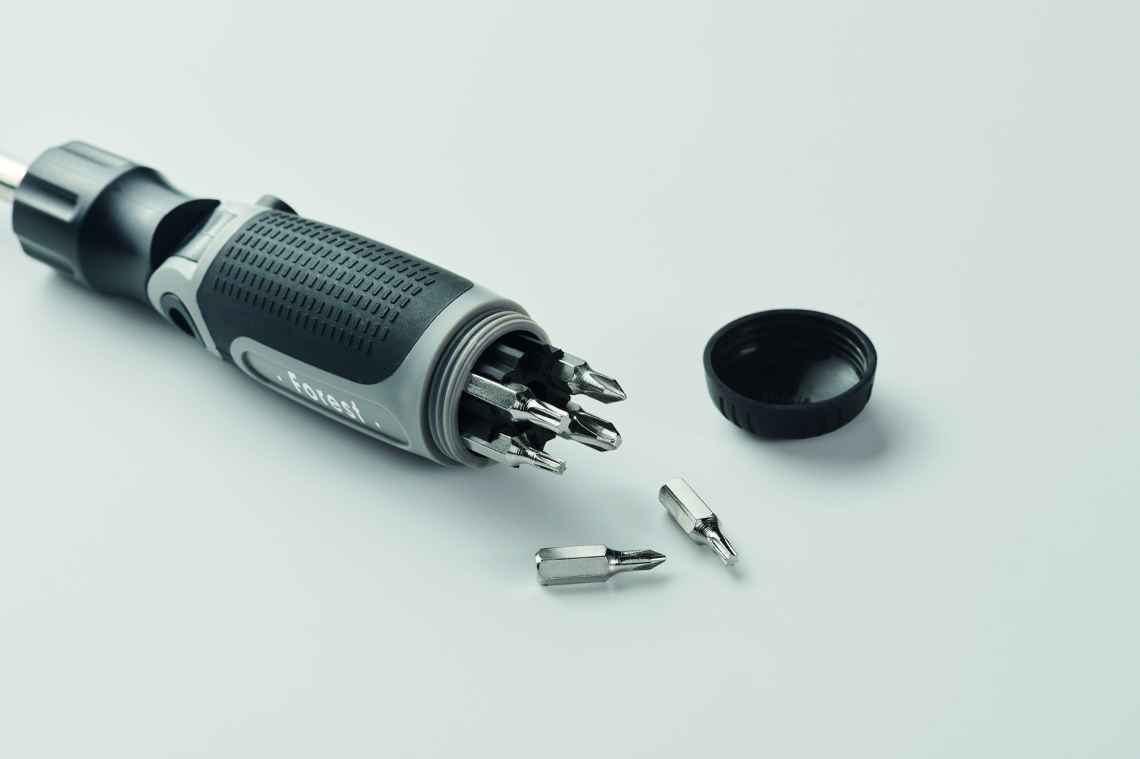 Set di cacciaviti pieghevoli con impugnatura in ABS e 12 punte in ferro, tra cui Phillips, testa piatta, esagonale e torx.