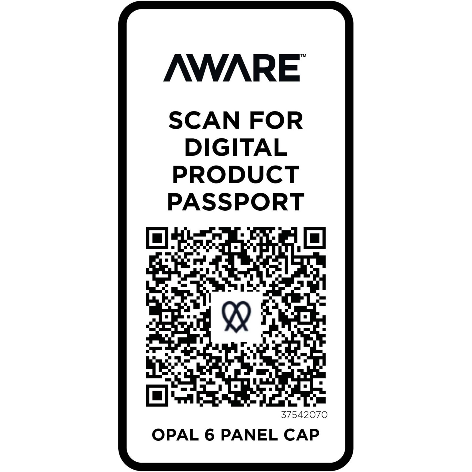 Il cappellino a 6 pannelli Opal è realizzato in cotone riciclato al 70% e in poliestere riciclato al 30%. Offre una vestibilità morbida, è adatto per una circonferenza della testa di 58 cm e ha una chiusura con fibbia in metallo che consente una regolazione facile e sicura. Il cappellino include fibre riciclate Cyclo® in cui vengono utilizzati scarti preselezionati che determinano il colore del filato. Queste fibre non solo riducono la domanda di risorse naturali, ma mostrano anche un impegno per una vita circolare, incarnando l'essenza della riduzione dei rifiuti e promuovendo un sistema a circuito chiuso. Ogni cappellino è inoltre dotato di un sistema di tracciamento Aware™. Questa funzione innovativa consente agli utenti di tracciare le origini e il percorso del loro articolo attraverso un codice QR, migliorando la trasparenza della catena di approvvigionamento e promuovendo un legame più forte tra il prodotto e il relativo processo di produzione.