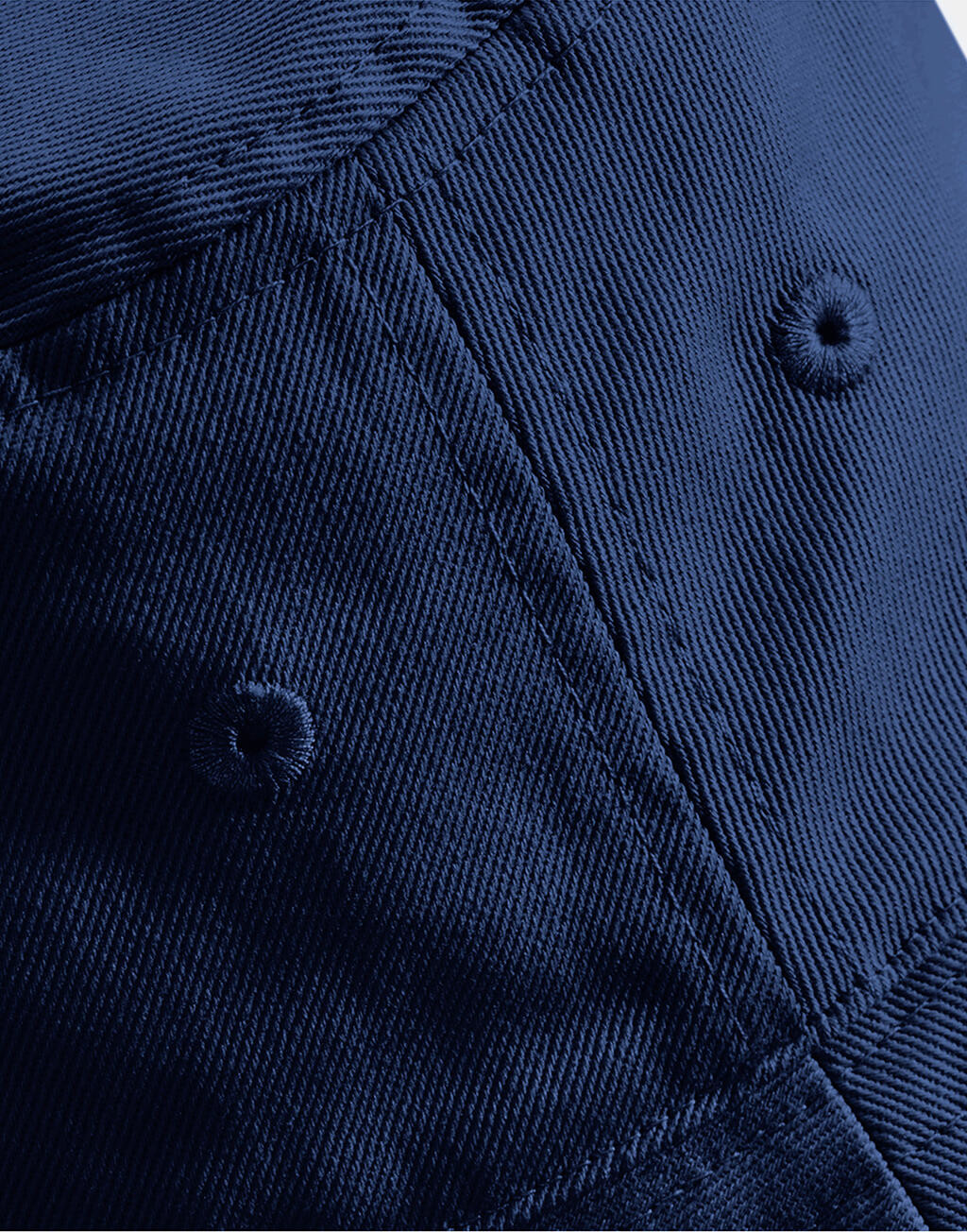 Cappellino 5 pannelli in cotone,160 gr/m² con fascetta regolabile in plastica. 2 occhielli cuciti tono su tono. Misura 7 1/4.