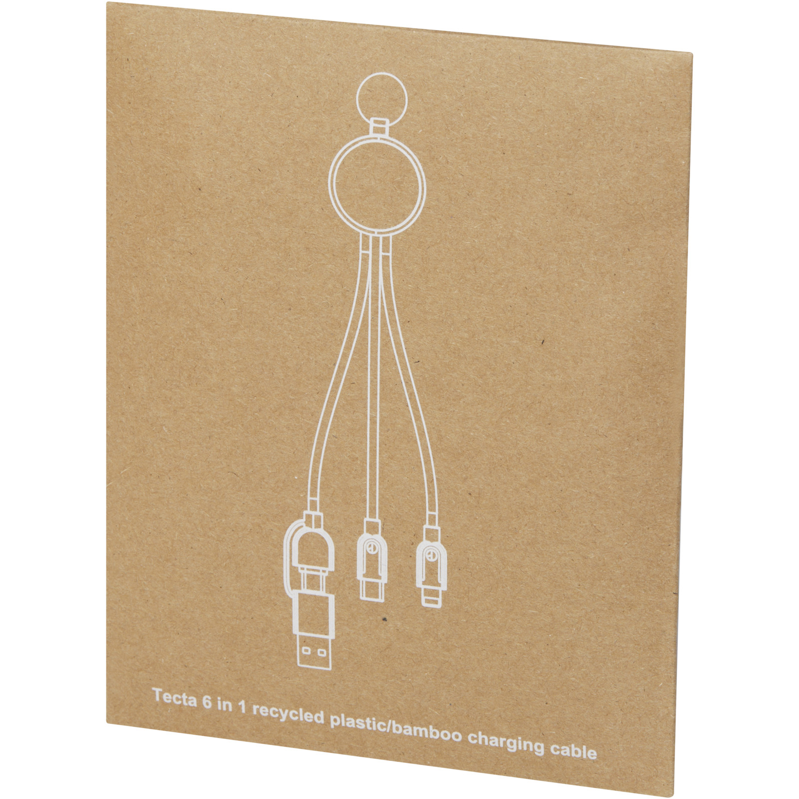 Il cavo di ricarica in bambù e plastica riciclata 6 in 1 Tecta è l'esempio di come la sostenibilità incontra lo stile. Con una lunghezza di 25 cm, questo cavo RTPE fornisce una potenza di ricarica di 2 A. Ingressi: USB A e Type-C. Uscite: Tipo-C, micro USB e micro USB 2 in 1 con connettore Lightning compatibili con dispositivi iOS e Android. I connettori USB in alluminio forniscono una connessione sicura e stabile, garantendo una ricarica affidabile ogni volta. Il portachiavi in acciaio inossidabile argentato è un modo comodo per organizzare e trasportare il cavo. Confezionato all'interno di una scatola in carta kraft riciclata.