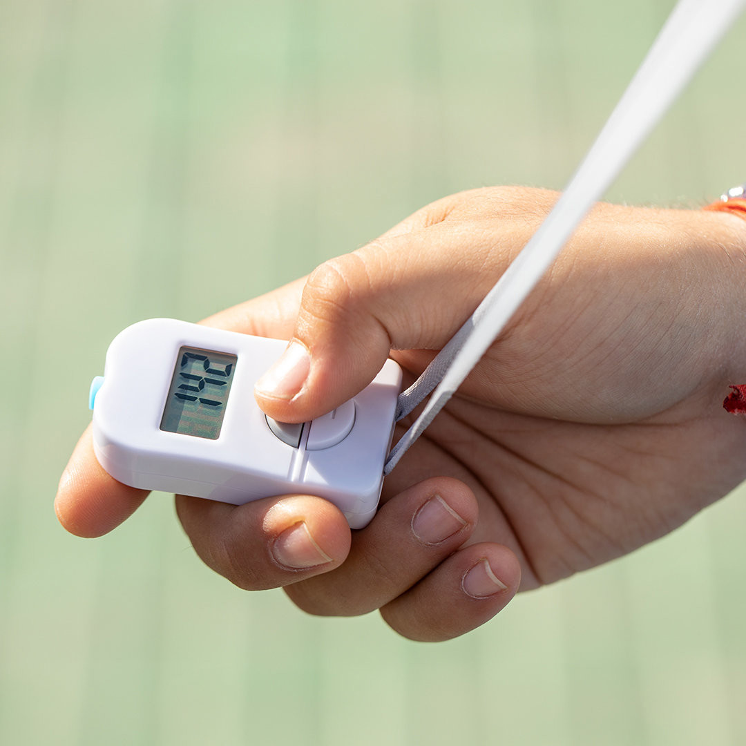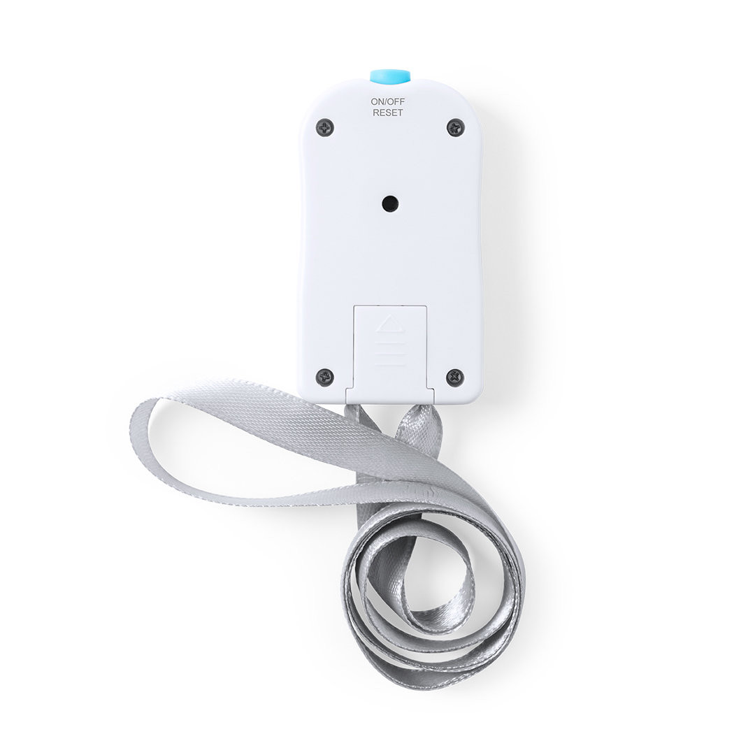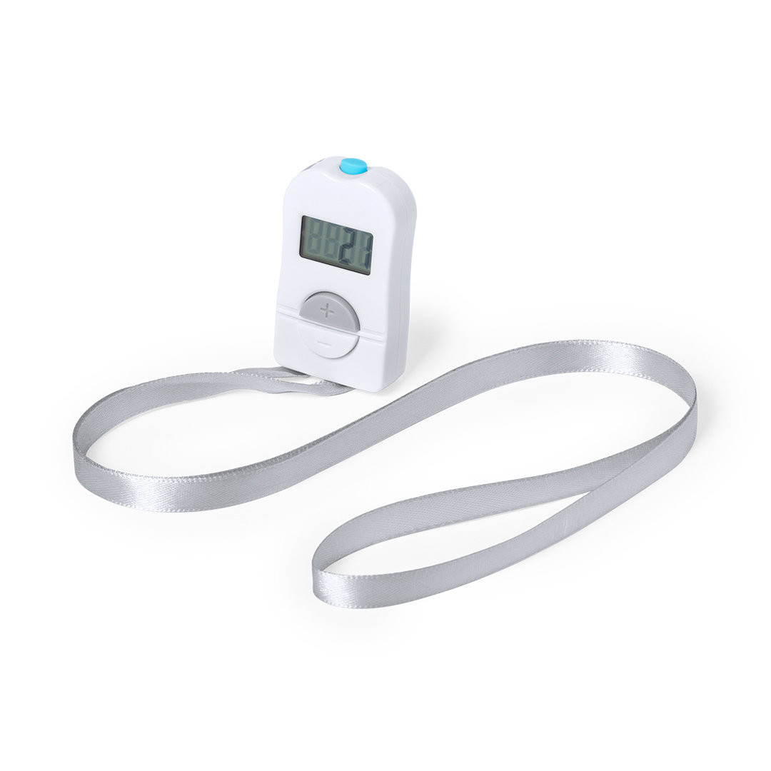 Contatore digitale di capacità realizzato in resistente materiale ABS con finitura lucida, con pratico nastro in poliestere e grandi pulsanti per aggiungere o sottrarre capacità. Display digitale con contatore a 4 cifre e pulsante di reset in alto. Ampia superficie del logo, appositamente studiata per la tampografia. Presentato in un'attraente scatola dal design individuale. Alimentato a batteria, pulsante incluso. Pila Bottone Inclusa