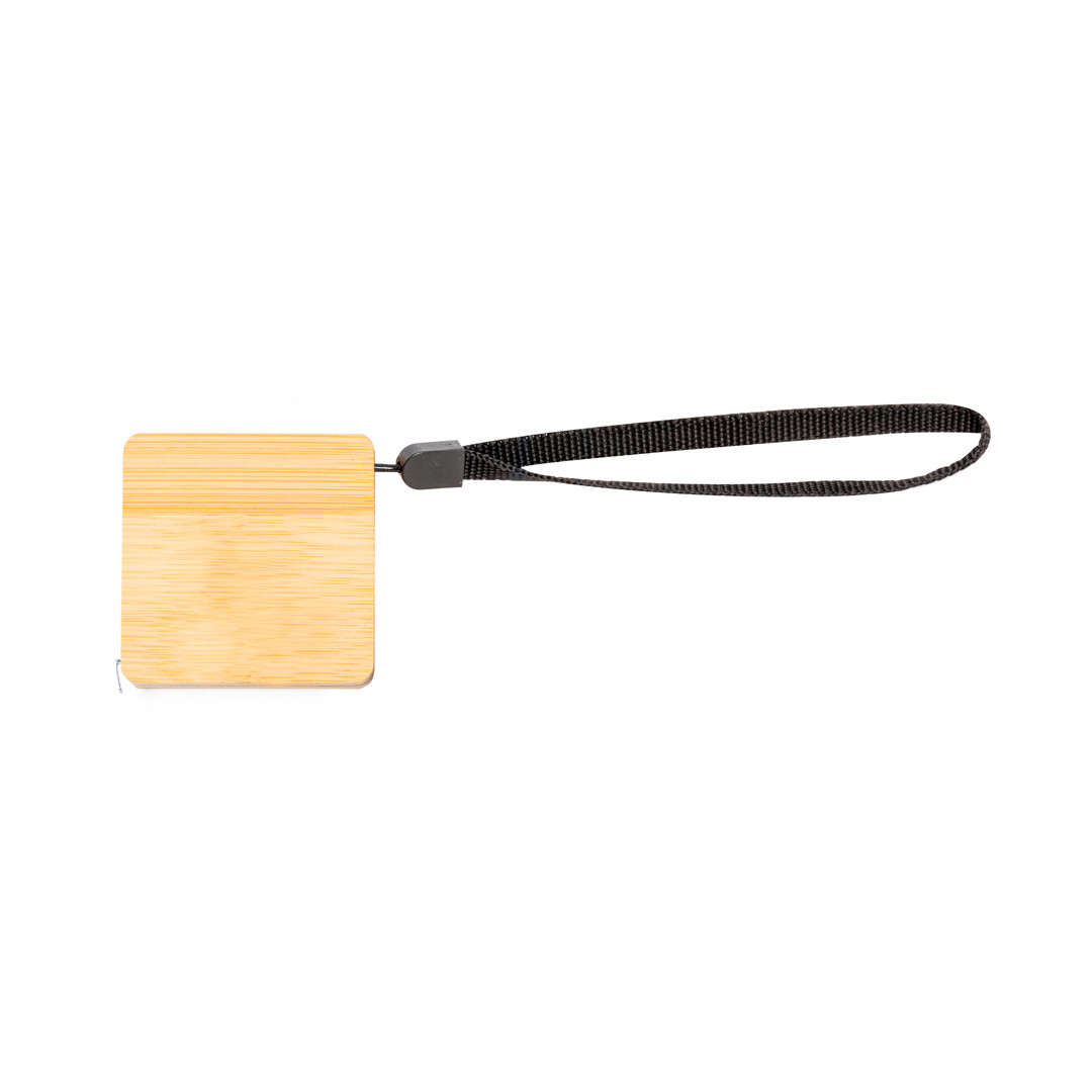Flessometro da 1 m in bambù, con lama metallica in centimetri e pollici. Con cinghia di trasporto e presentato in una scatola dal design kraft. Materiali come il bambù promuovono l'uso di materie prime naturali e riducono le emissioni inquinanti. Inoltre, il bambù proviene da una pianta altamente resistente e versatile, con una rapida crescita e rigenerazione, che lo rende un'ottima alternativa all'uso del legno tradizionale.