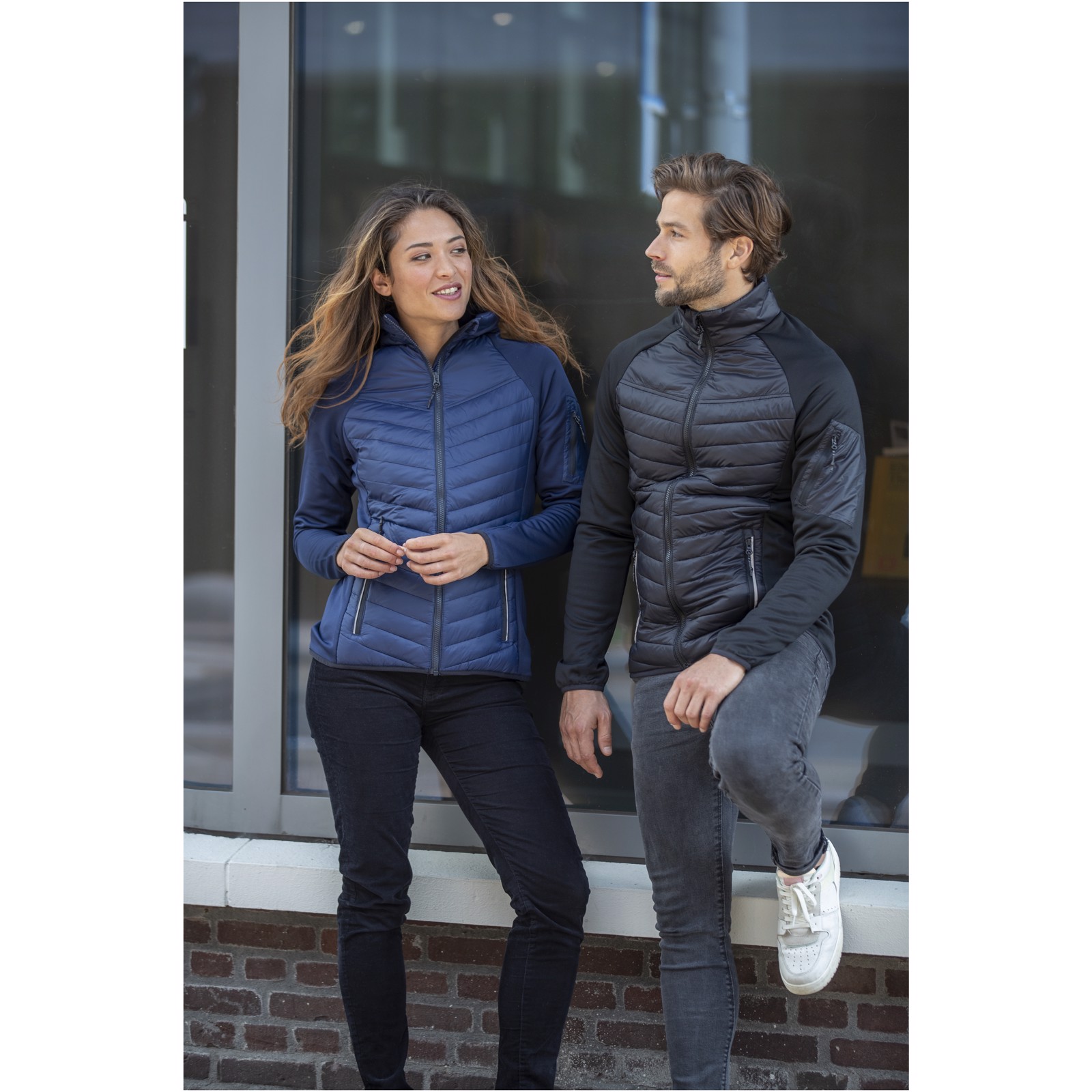 La giacca termica ibrida Banff da uomo è una fusione perfetta di stile e prestazioni. L'aletta interna assicura che il vento non passi attraverso la giacca, mentre l'orlo posteriore sceso aggiunge un tocco di copertura in più per un maggiore calore. L'elastico in colore contrastante aggiunge un accento di stile e garantisce una vestibilità sicura. Il tessuto opaco della giacca 380T ha una finitura idrorepellente e impermeabile ed è realizzato in nylon (38 g/m2). Il tessuto a contrasto è una maglia interlock in poliestere ed elastan (245 g/m2), che aggiunge flessibilità e comfort. L'isolamento in finta piuma di poliestere offre un calore leggero, perfetto per le giornate fredde.
