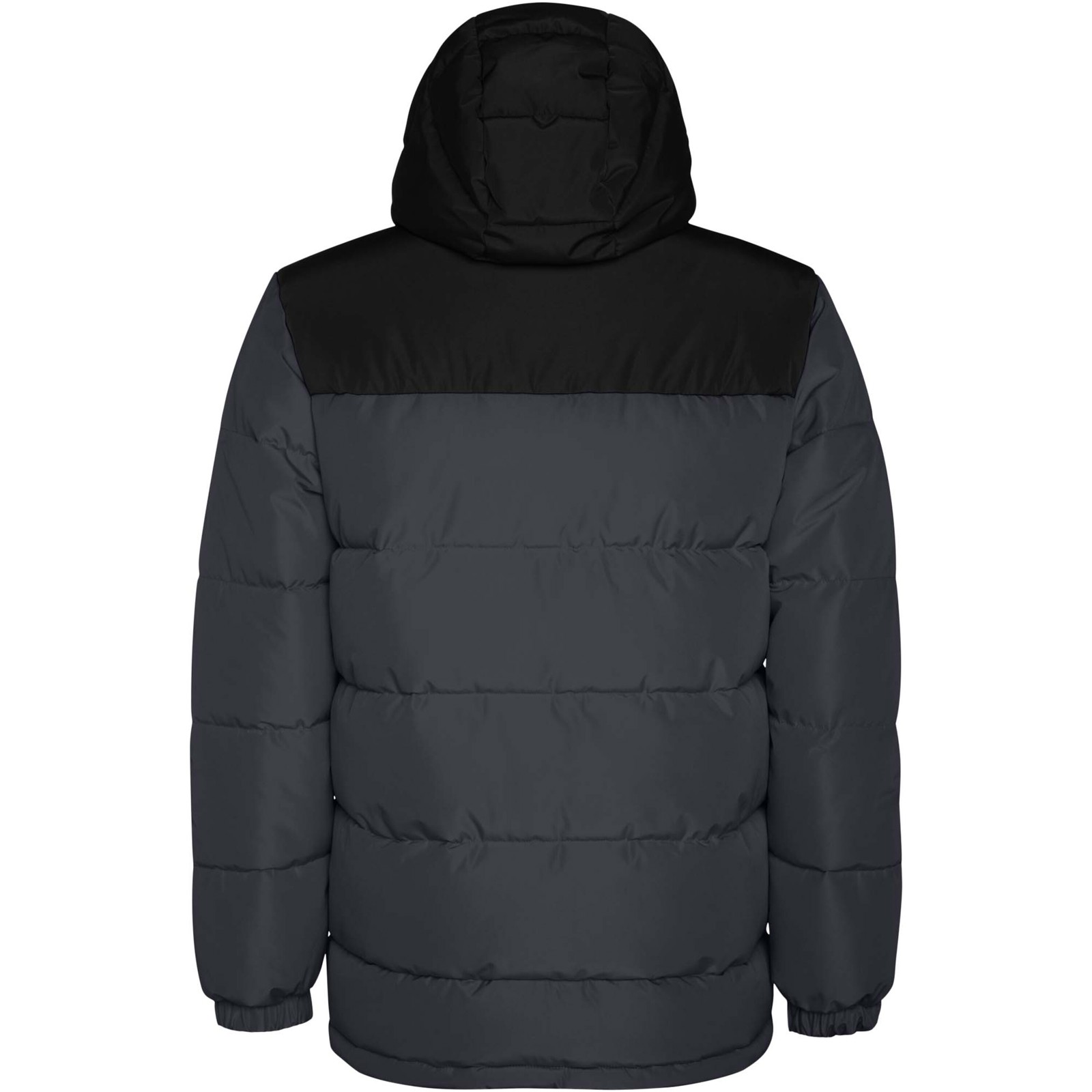 Giacca imbottita con cappuccio fisso. Cerniera anteriore coperta da una pattina. Proteggi mento. Due tasche laterali con zip. Polsini elasticizzati.