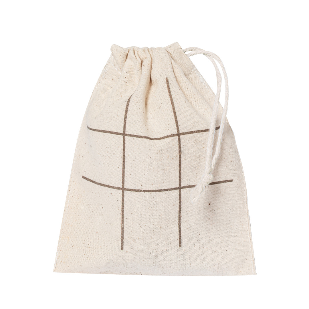 Gioco del tris realizzato in sughero naturale. Include 5 pedine a forma di albero e 5 pedine a forma di stella. Presentato in una borsa di cotone con chiusura a coulisse da utilizzare come tavola da gioco.Realizzato con elementi a base vegetale per promuovere l'uso di materie prime naturali e ridurre le emissioni inquinanti. 10 Pezzi. Custodia Cotone