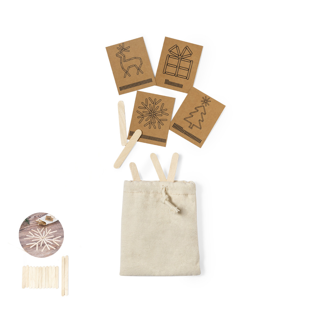 Originale gioco di abilità che consiste nel costruire correttamente le figure presentate sulle carte visive con i diversi pezzi del gioco. Un gioco divertente per incoraggiare l'agilità mentale. Include 36 pezzi di legno naturale di diverse dimensioni per costruire le figure (8 lunghe e 28 corte) e 4 divertenti disegni di stelle con schede visive in cartone riciclato. Presentato in un sacchetto di cotone al.Realizzato con elementi vegetali per favorire l'uso di materie prime naturali e ridurre le emissioni inquinanti. 36 Pezzi. Custodia Cotone
