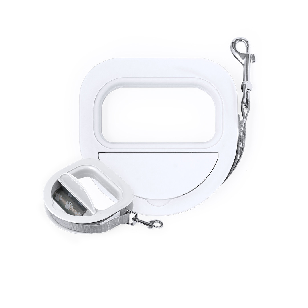 Guinzaglio da passeggio da 3 metri, realizzato in poliestere resistente, con una robusta scocca in ABS. Comoda maniglia ergonomica e pratico scomparto con coperchio per riporre le borse. Include un moschettone in metallo con gancio girevole ed è confezionato singolarmente in una scatola dal design kraft.