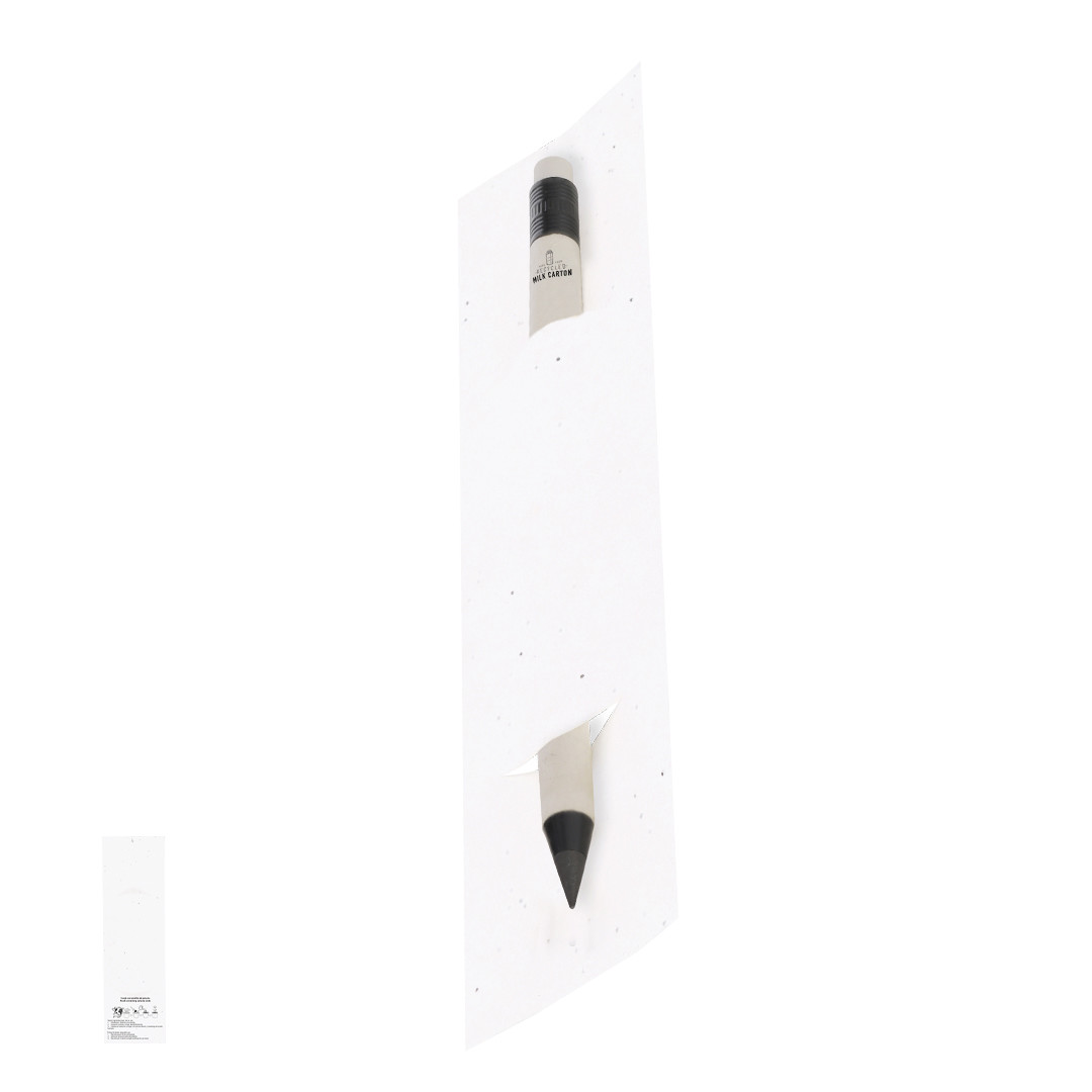 Matita eterna realizzata con cartoni di latte riciclati, presentata in custodia di carta con semi. Riutilizzabile e con scrittura infinita. Include gomma di cancellazione sulla parte superiore della matita e cappuccio di protezione. Di colore bianco, con dettagli neri. Con distintivo di cartone di latte riciclato nel corpo. La custodia include semi di petunia, trasformandola in carta piantabile alla fine della sua vita utile. Include istruzioni di piantagione sulla copertina posteriore.I cartoni di latte sono composti principalmente da cartone e alluminio. Durante il processo di riciclo, si separano i vari materiali dell'imballaggio per il loro riutilizzo e nuovo utilizzo, contribuendo così a percorrere il cammino infinito dell'economia circolare. Questo materiale si caratterizza per il suo alto grado di riciclabilità, così come per la sua leggerezza e resistenza. Custodia Carta da Piantare. Semi di Petunia. Fiori Colori Assortiti