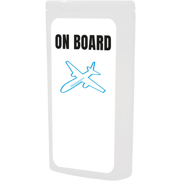 Il kit ideale per ogni viaggio. Con questo kit potrete rilassarvi e rinfrescarvi, per arrivare riposati a destinazione. Le dimensioni di questo kit consentono di portarlo sempre con voi. Contenuto: 1 spazzolino, 1 dentifricio, 1 tappi per orecchie, 2 salviettine rinfrescanti. Tutti i prodotti contenuti nei MyKit rispettano le norme Europee vigenti. I prezzi includono stampa all-over fronte e retro.