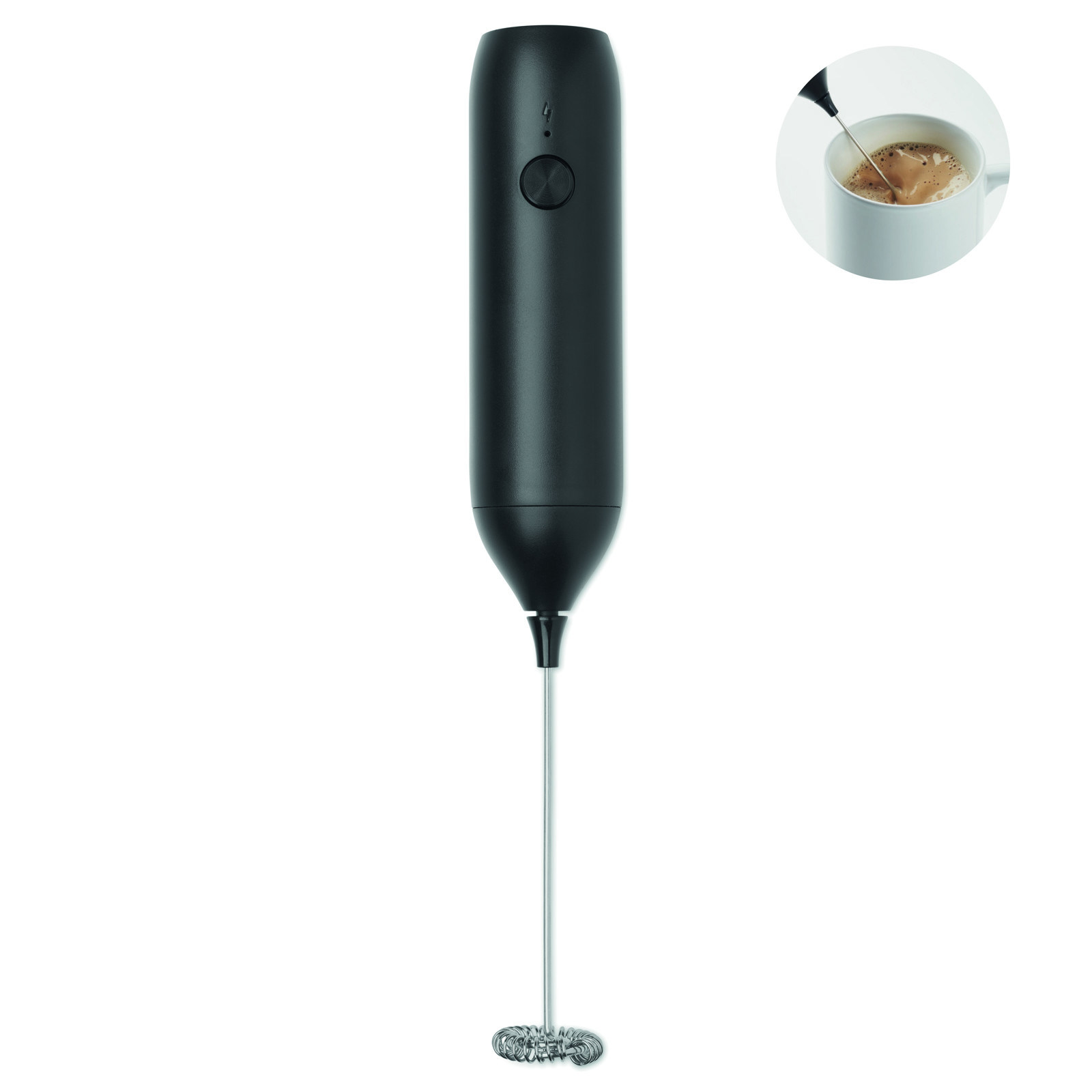 Montalatte elettrico portatile in ABS con finitura opaca. Batteria incorporata con capacità di 500 mAh. Ricaricabile tramite USB Type-C (cavo incluso). Velocità: 10 000 giri/min.