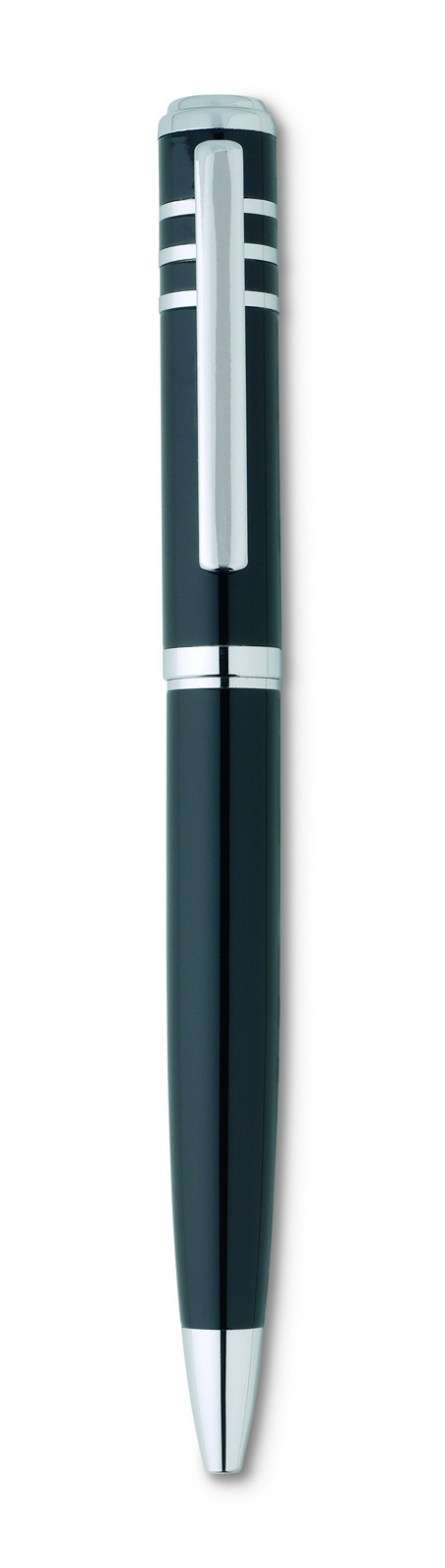 Penna a sfera con rifiniture laccate lucide in confezione regalo di cartone. Meccanismo twist. Refill nero.