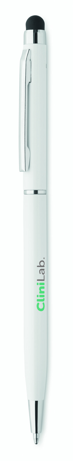 Penna a sfera in alluminio con meccanismo twist, finitura opaca e punta touch. Refill blu.