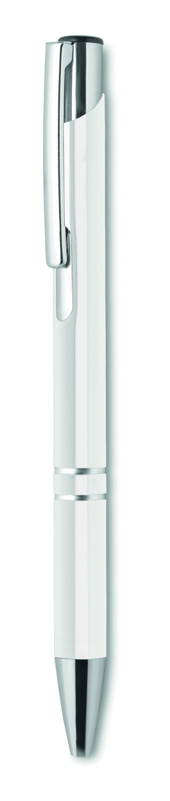 Penna a sfera twist-action in alluminio riciclato con stilo e clip cromata lucida. Inchiostro blu.