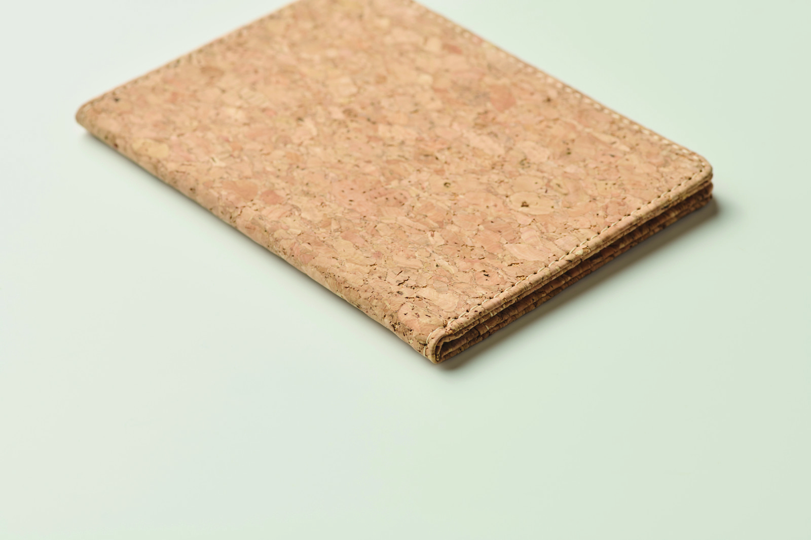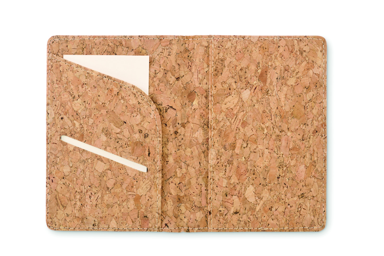 Portapassaporto in sughero con scomparto interno per carte di credito.