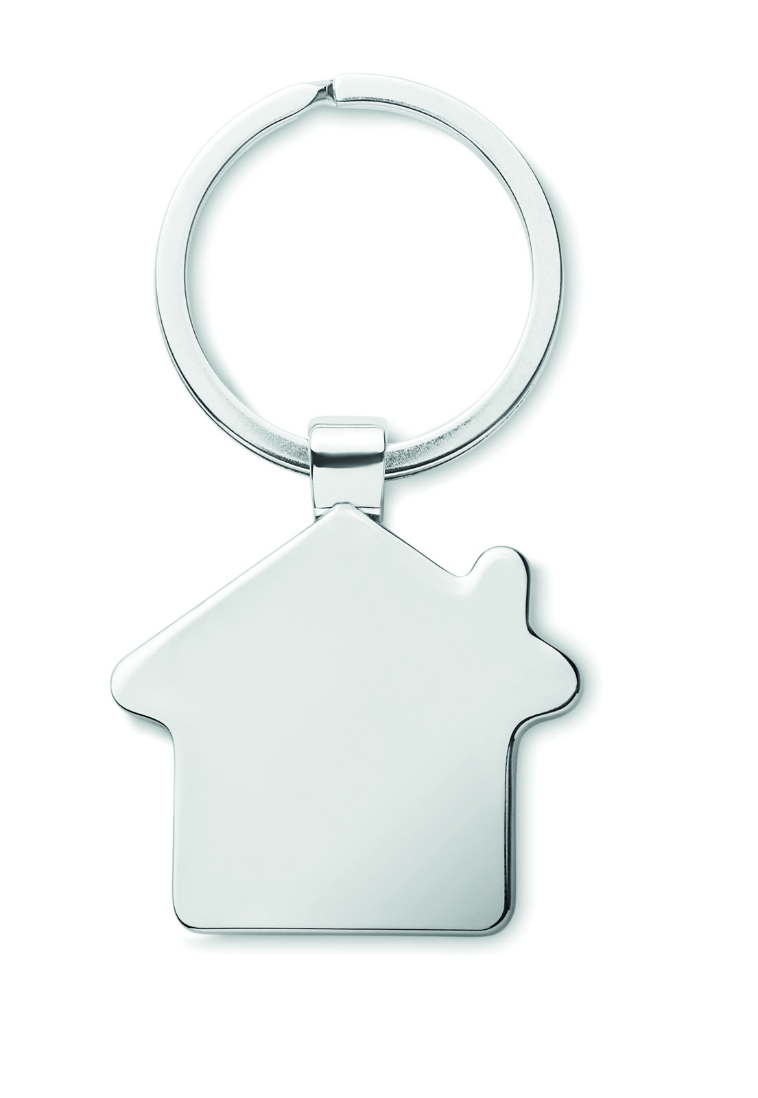 Portachiavi circolare in metallo rivestito di nickel lucido.
