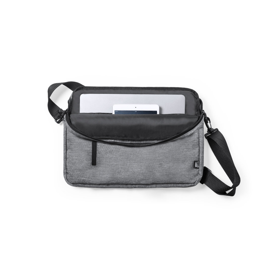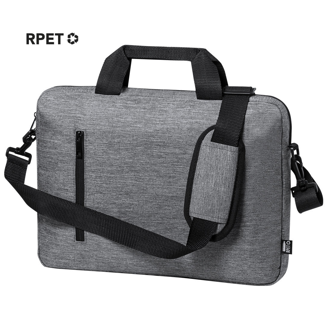 Elegante portadocumenti della linea nature in resistente RPET 600D effetto melange, realizzato in plastica riciclata per favorire il riutilizzo dei rifiuti plastici e contribuire alla sostenibilità del pianeta. Dettagli neri, include scomparti interni imbottiti per computer fino a 15 pollici e tablet fino a 10 pollici. Accessorio posteriore per il fissaggio sul trolley, tasca esterna con cerniera, manici rinforzati e confortevoli, tracolla regolabile con chiusura a moschettone e spallina abbinata.Etichetta distintiva con logo RPET. Tasca Imbottita per Portatile e Tablet