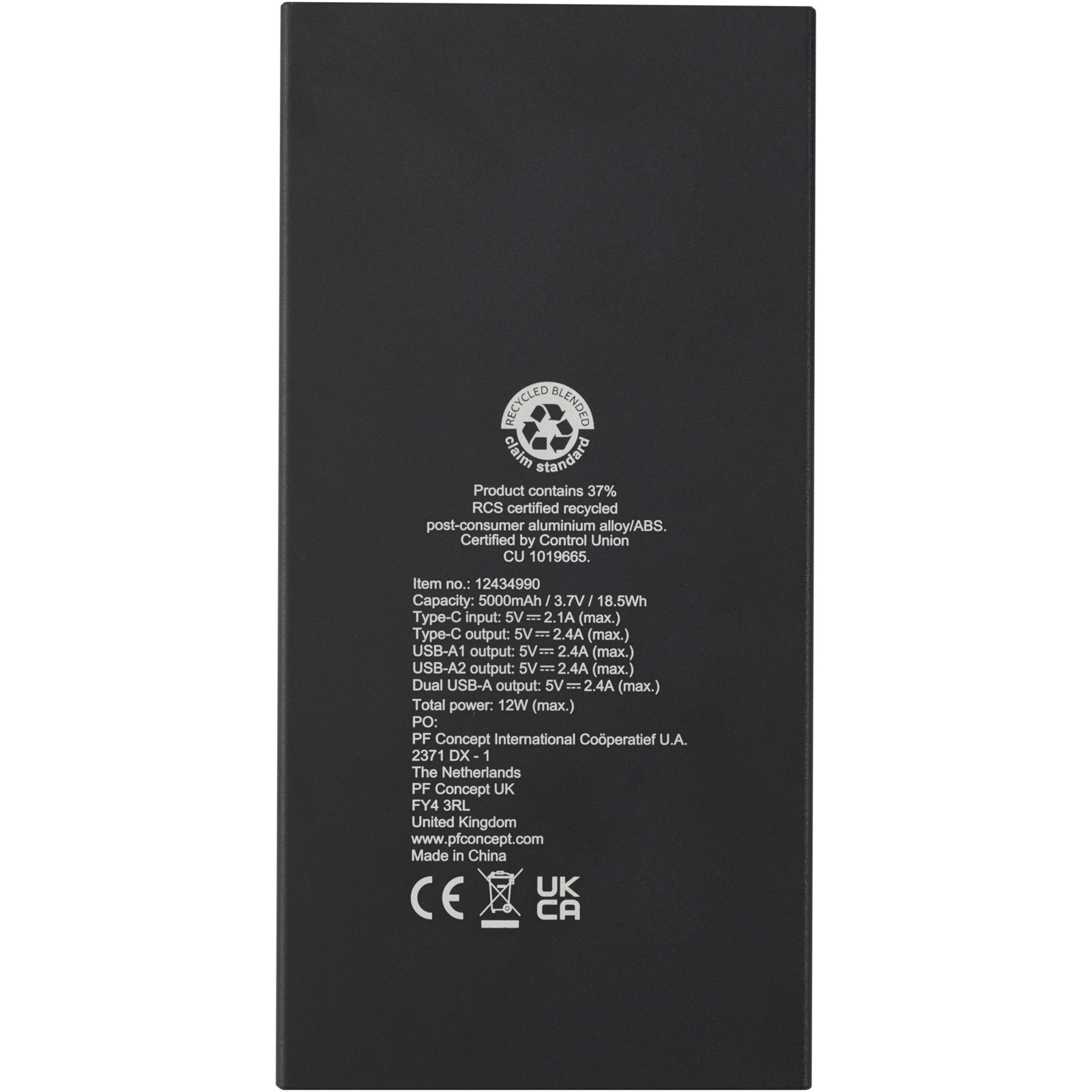 L'elegante power bank Connect in alluminio riciclato da 5000 mAh non ti farà mai restare senza energia ovunque ti trovi! Questo power bank sottile e di alta qualità con batteria ai polimeri di litio è dotato di una porta di ingresso USB-C da 5 V/2,1 A max, una porta di uscita USB-C da 5 V/2,4 A max e 2 uscite USB-A da 2,4 A/5 V. Fornito con un manuale d'uso, un cavo di ricarica da 30 cm da USB-A a Tipo-C 2 A max e confezionato in una scatola di carta kraft riciclata al 100% con un adesivo colorato.