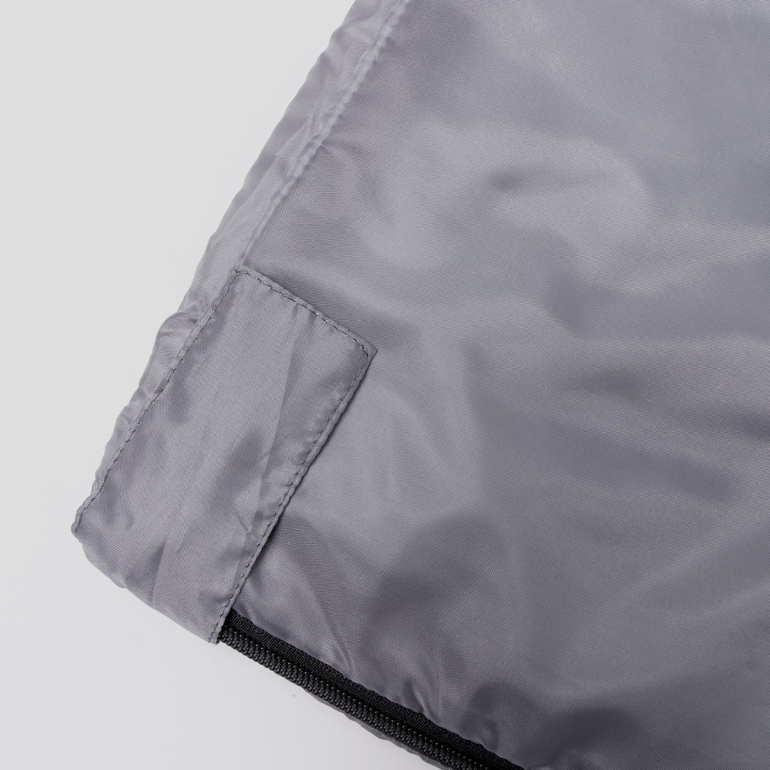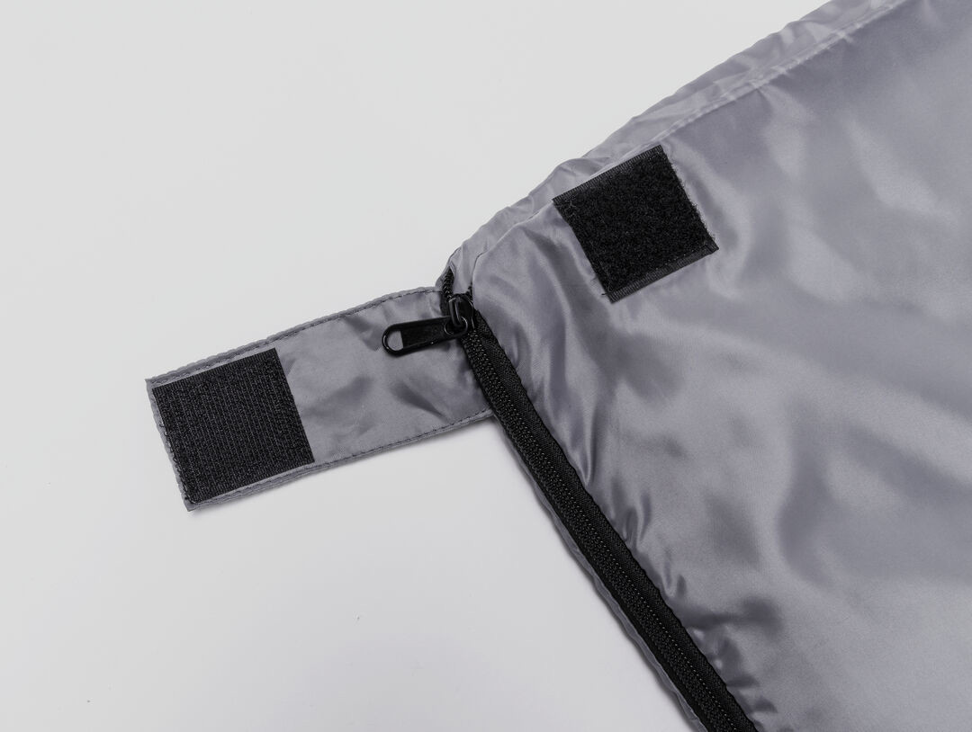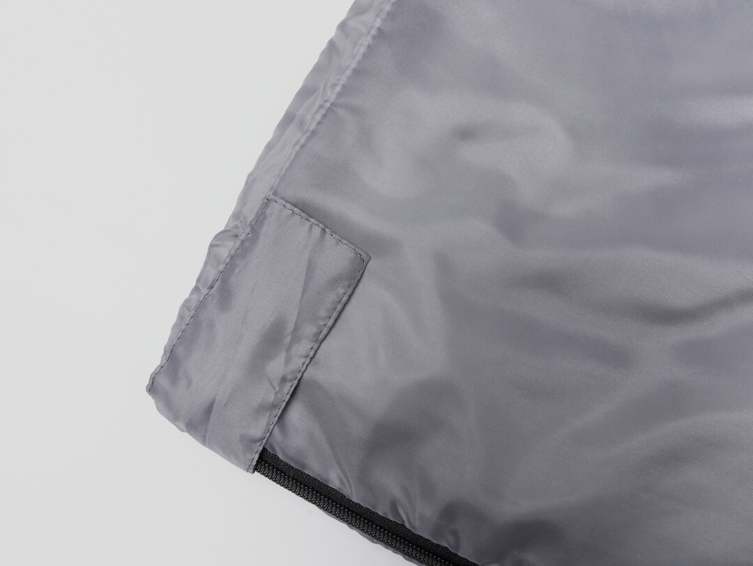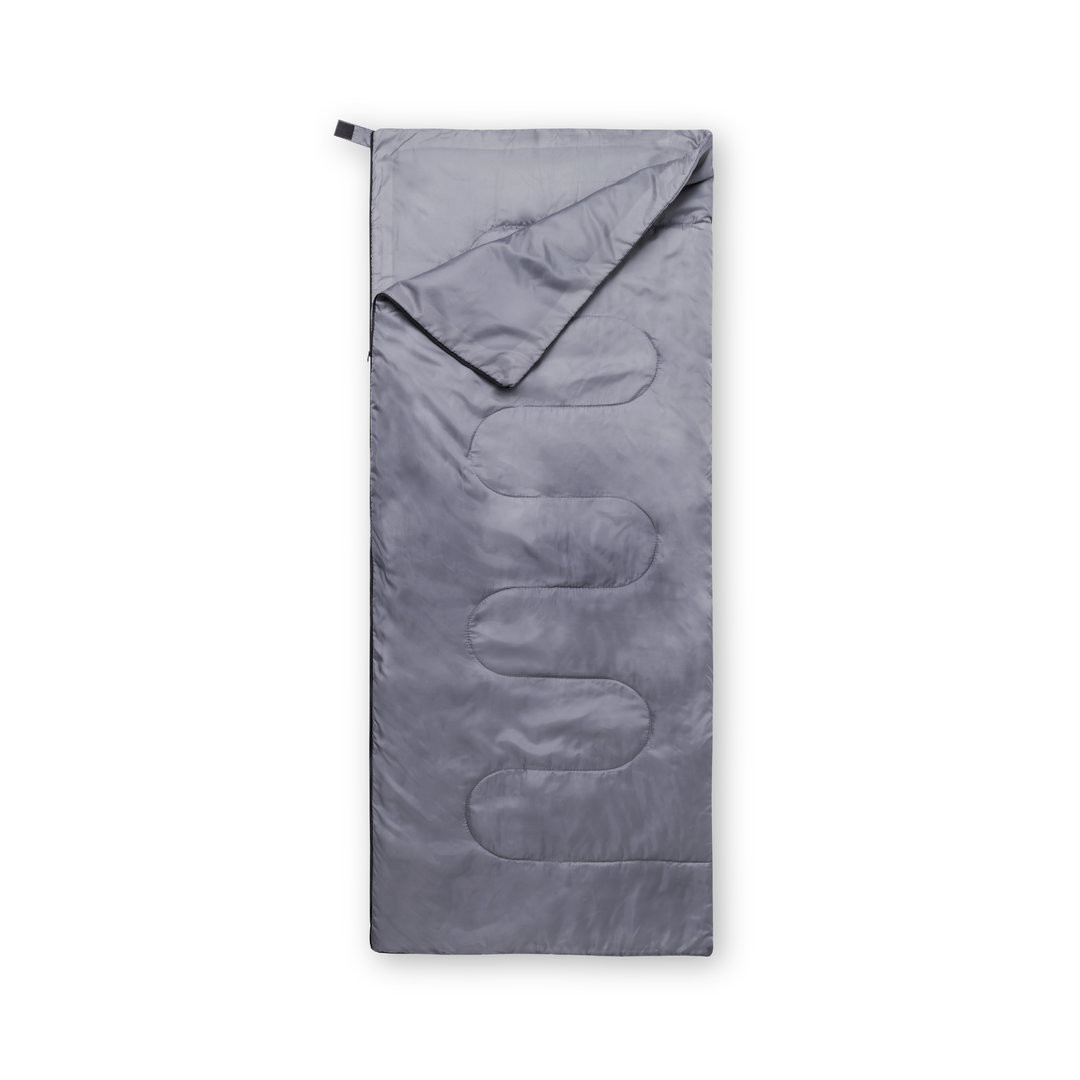 Sacco a pelo in resistente poliestere RPET 190T, caldo e piacevole al tatto, in color grigio. Con spessa imbottitura interna e chiusura a zip ad apertura totale. Copertina abbinata in RPET, con chiusura a coulisse, regolatore ed etichetta esterna con logo RPET.Il materiale RPET è realizzato con plastica riciclata, promuovendo così il riutilizzo dei rifiuti plastici e contribuendo alla sostenibilità del pianeta. Custodia Polyester RPET