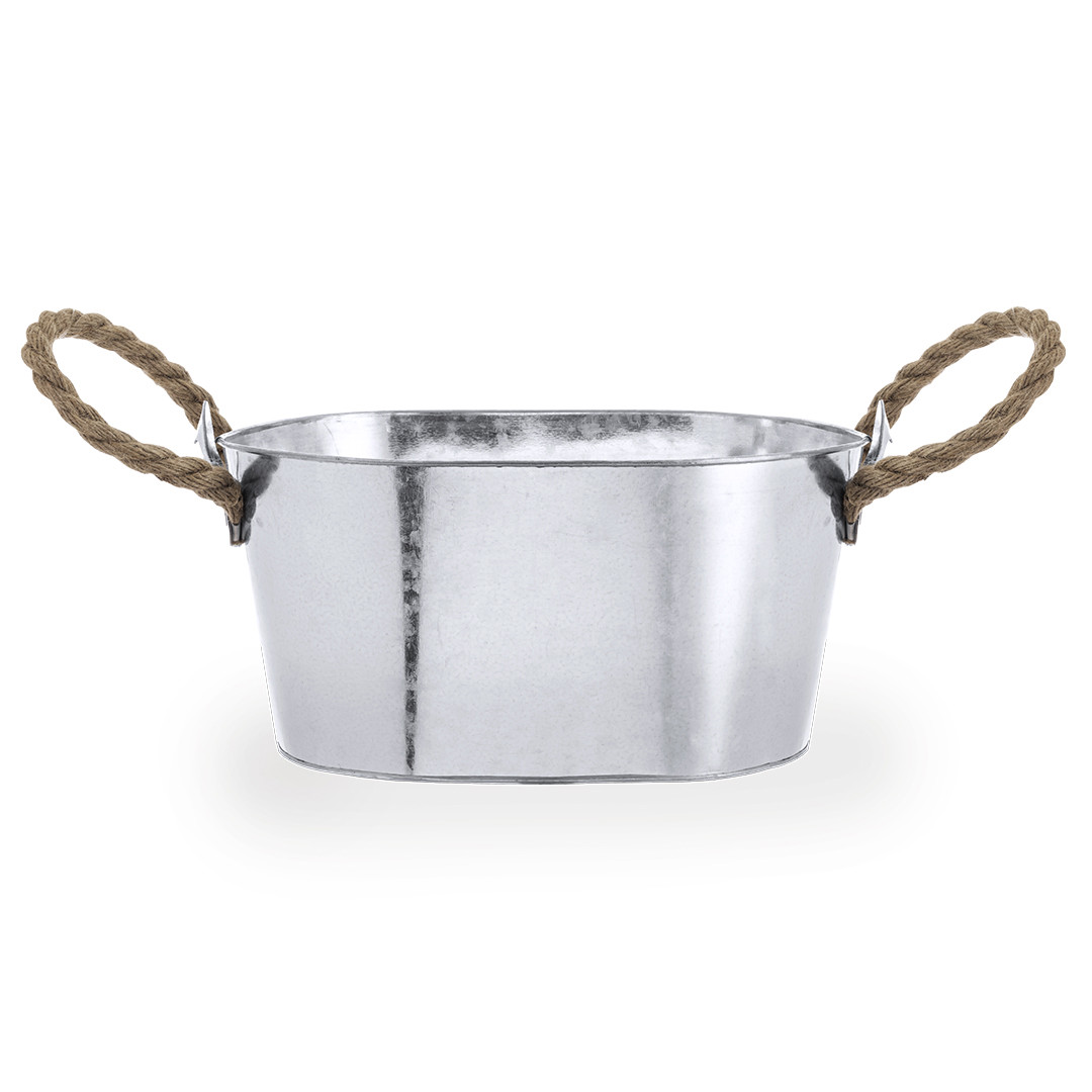 Fantastico secchio in metallo da 6 L per la conservazione di bevande fredde. Perfetta fusione di stile e utilità, con aperture fisse alle estremità e grande capacità. Design robusto con manici in corda per un facile trasporto. 6 L. Apribottiglia Incluso