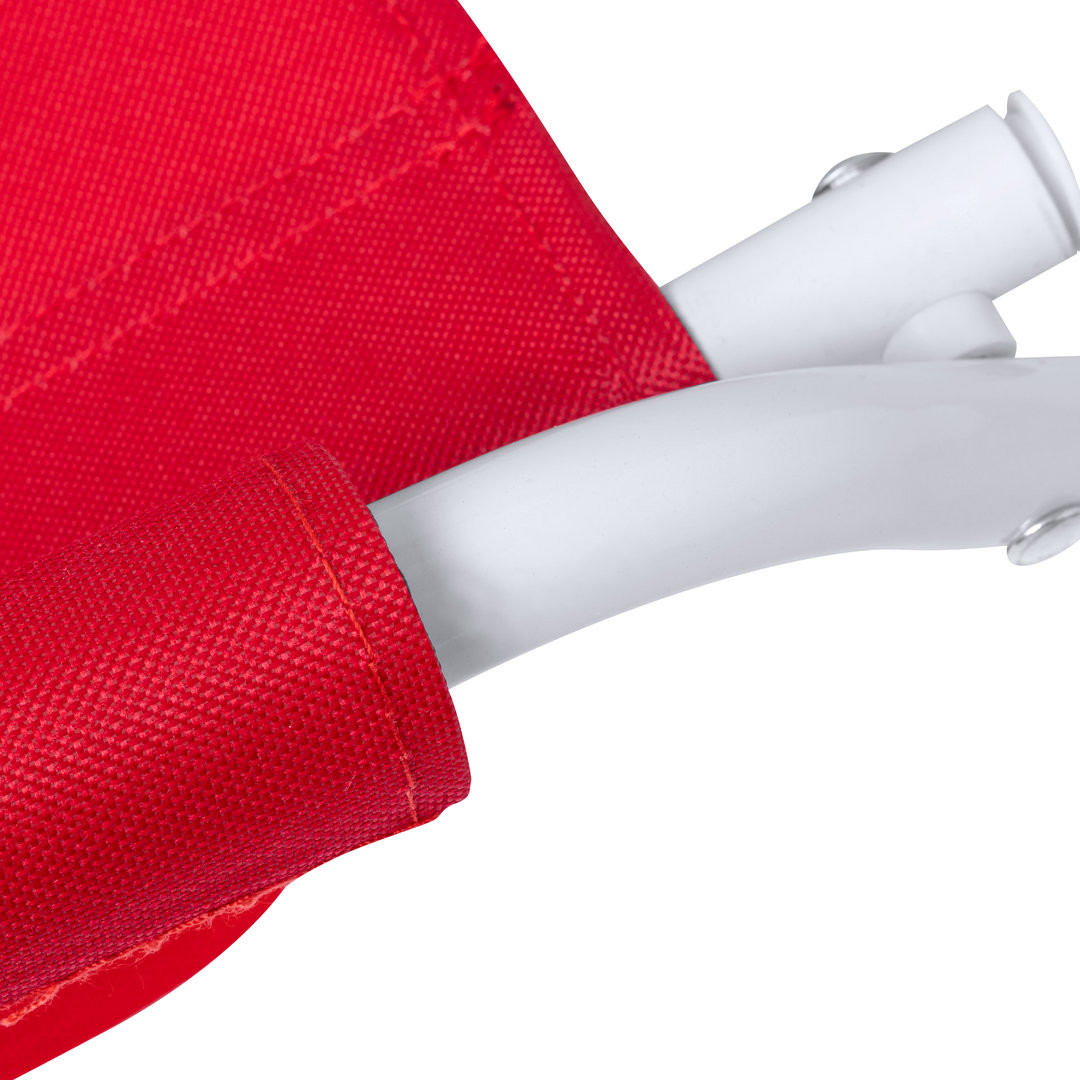 Sedia pieghevole leggera e robusta, con struttura in metallo laccato bianco. Schienale e seduta in poliestere 600D, con imbottitura in schiuma coordinata su braccioli e poggiatesta. Con maniglia di trasporto coordinata e disponibile in un'ampia gamma di colori. Pieghevole