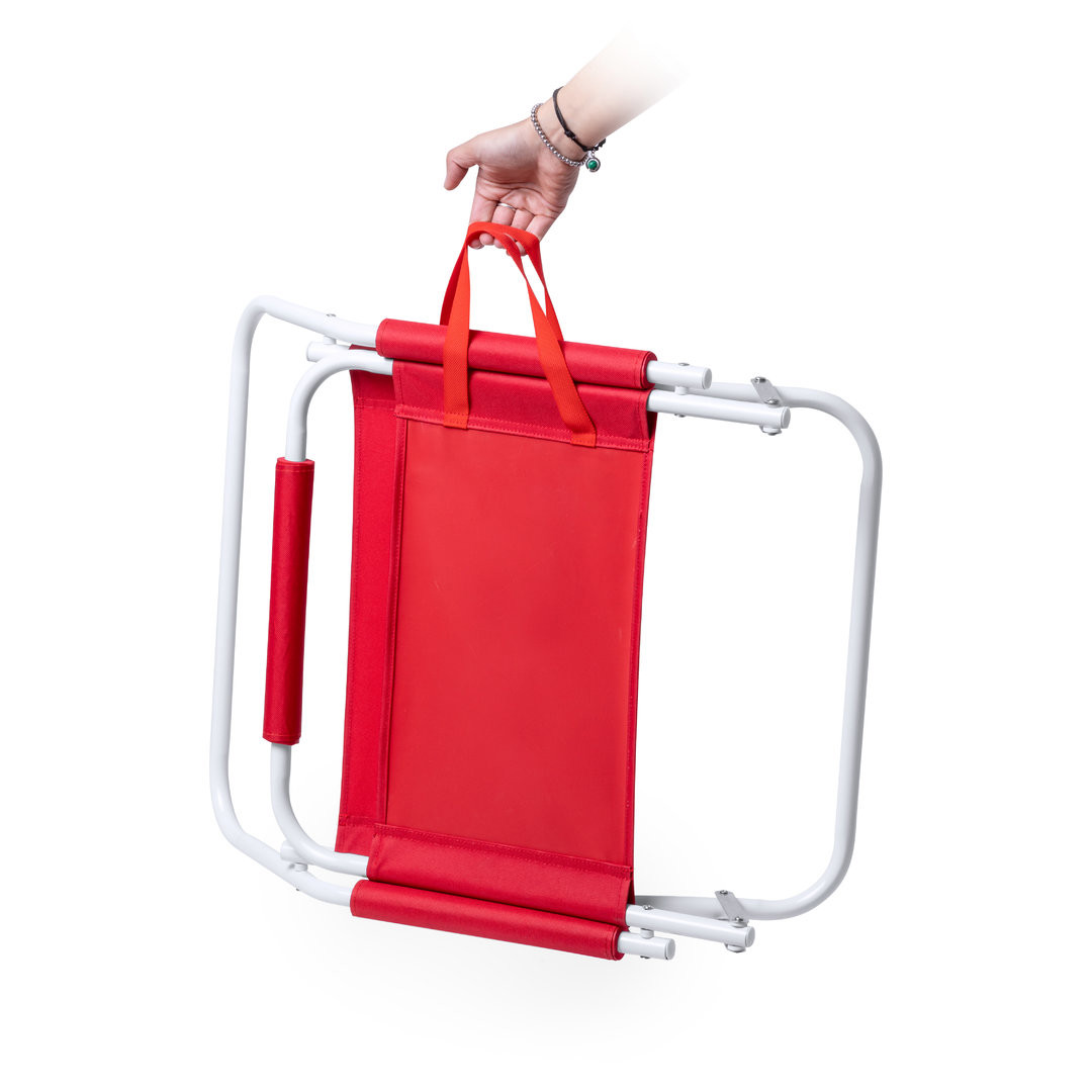 Sedia pieghevole con scocca in alluminio e borsa termica integrata nel sedile in vari colori. Seduta e borsa termica in resistente poliestere 600D con cuciture rinforzate. Con chiusura a zip e pratiche maniglie in nylon per il trasporto. Con striscia di rinforzo in nylon sulle gambe e interno isotermico in finitura alluminio. Pieghevole