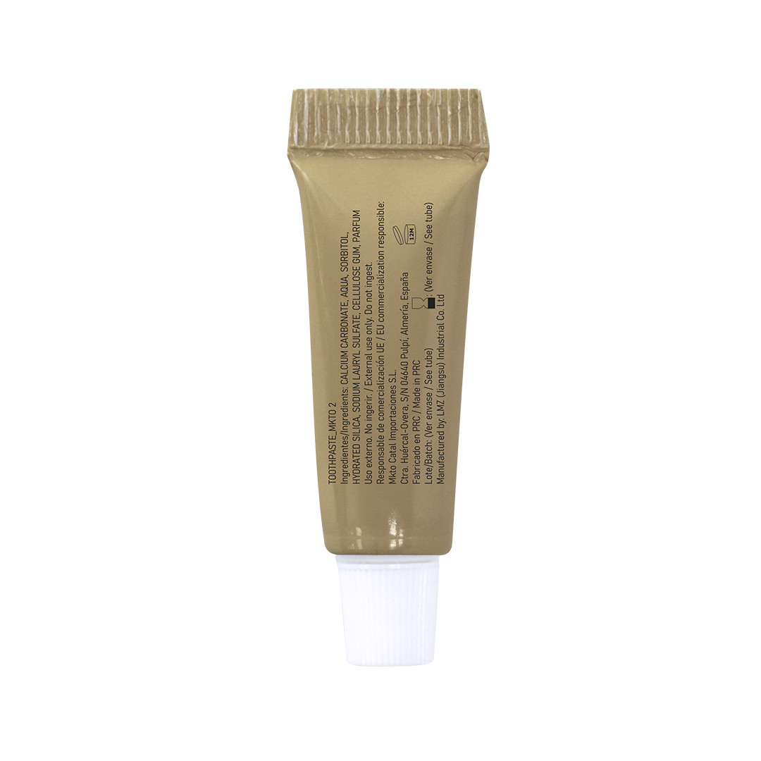 Set dentale con spazzolino da denti e dentifricio. Contenuto:Spazzolino da denti realizzato in bambù.Dentifricio incluso in tubo da 3 gr, con tappo a vite.In colori naturali e presentato in astuccio individuale di cartone riciclato.Materiali come il Bambù promuovono l'uso di materie prime naturali riducendo le emissioni inquinanti. Inoltre, il bambù proviene da una pianta di grande resistenza e versatilità, con crescita e rigenerazione rapide, essendo un'ottima alternativa all'uso di legno tradizionale. Spazzolino da Denti Bambù. Dentifricio 3 gr