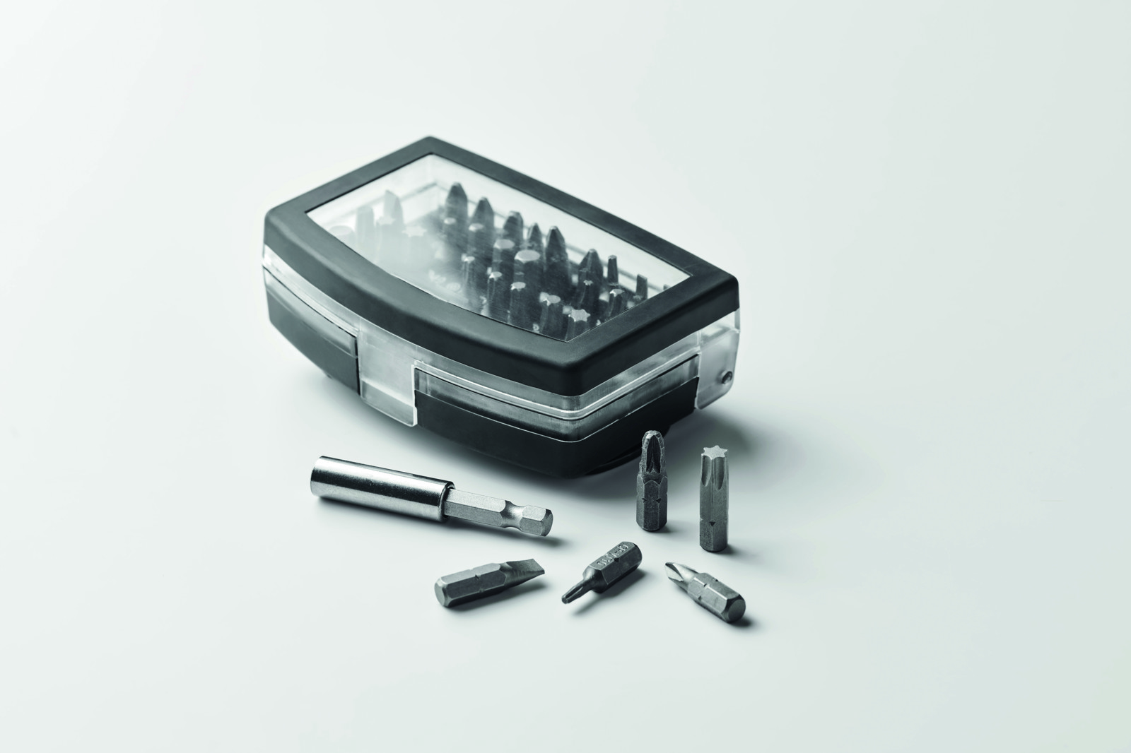 Set di punte per cacciavite da 32 pezzi con porta-clip rotante.