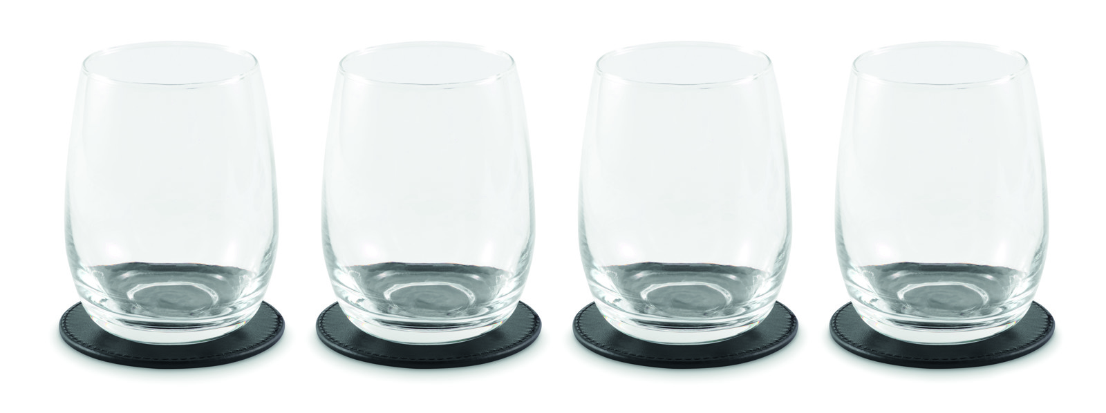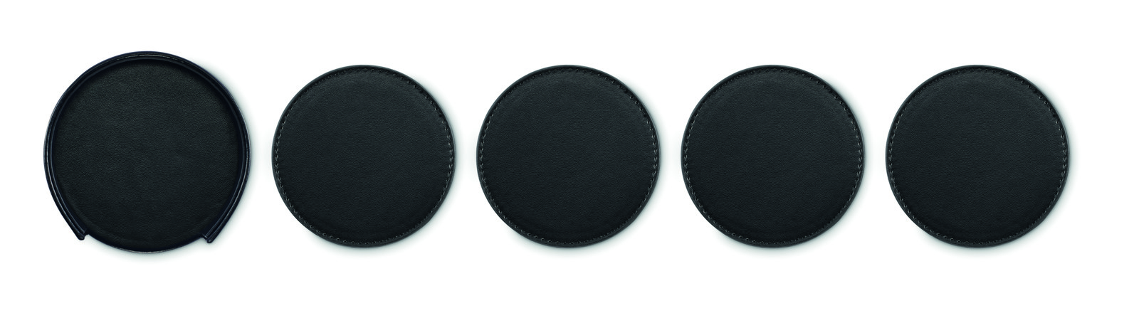 Set di 4 sottobicchieri in PU con supporto in PU.