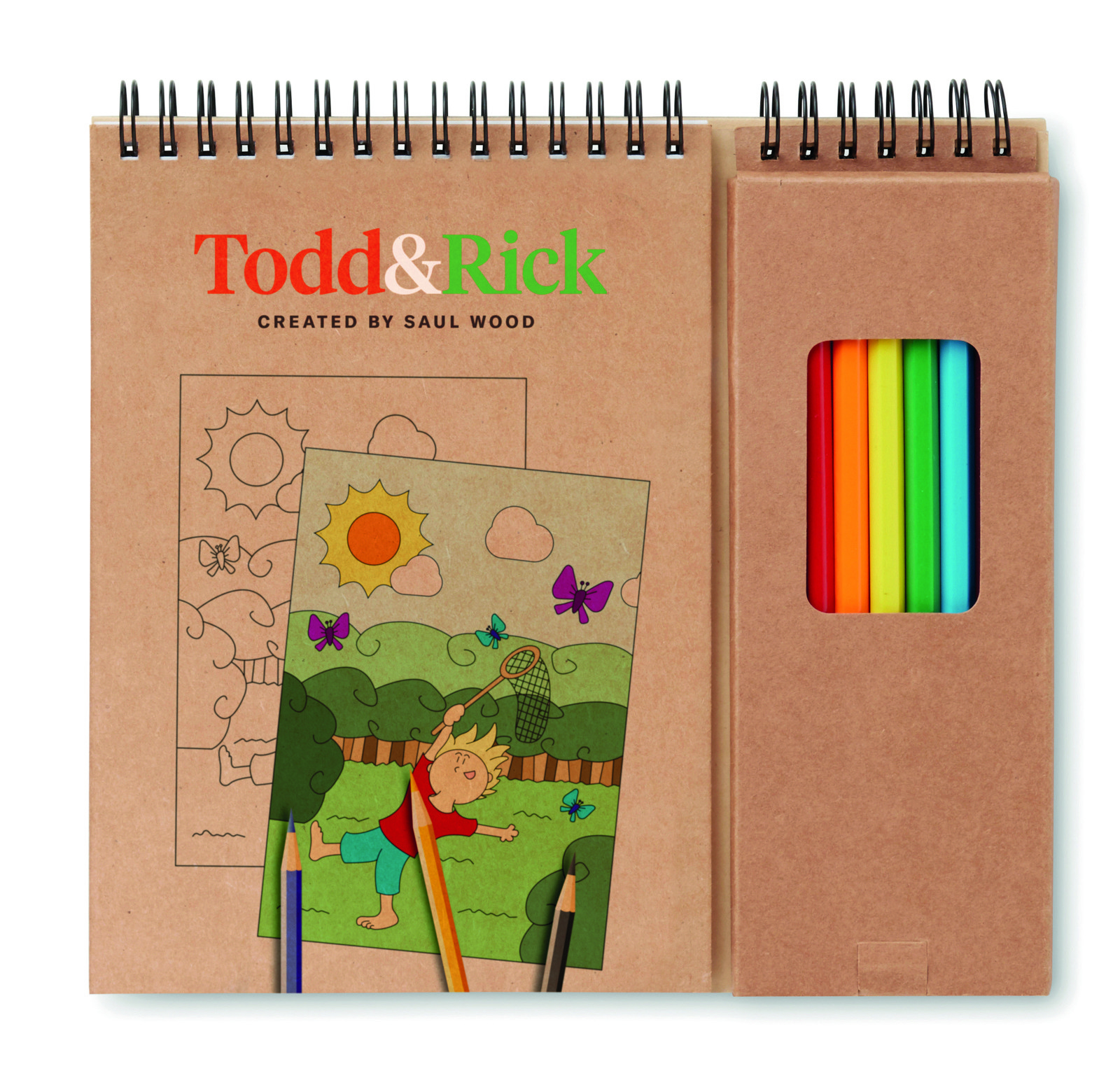 Set per colorare composto da un notebook di 24 pagine con 6 disegni prestampati e 18 pagine bianche. 8 matite colorate incluse.