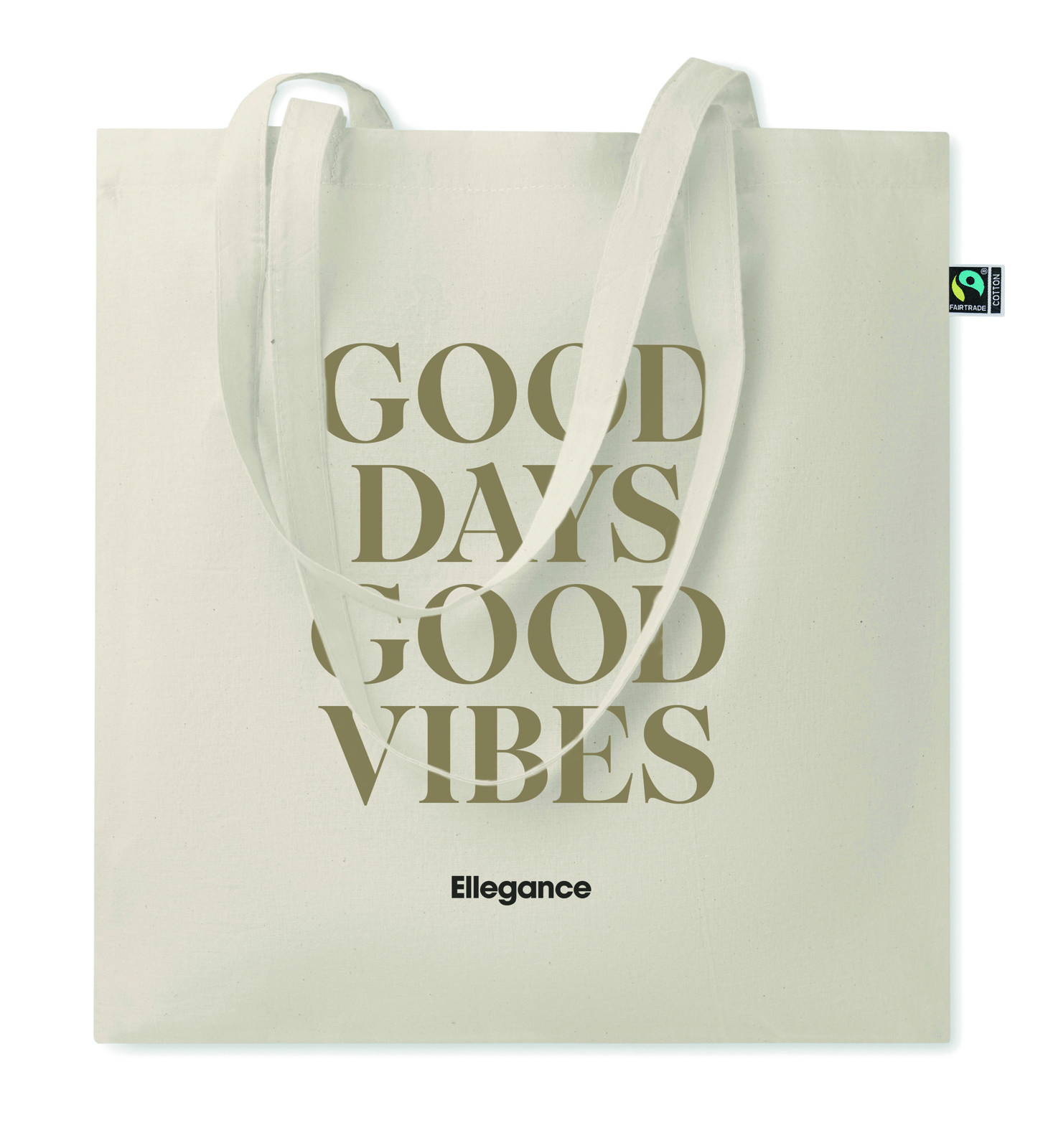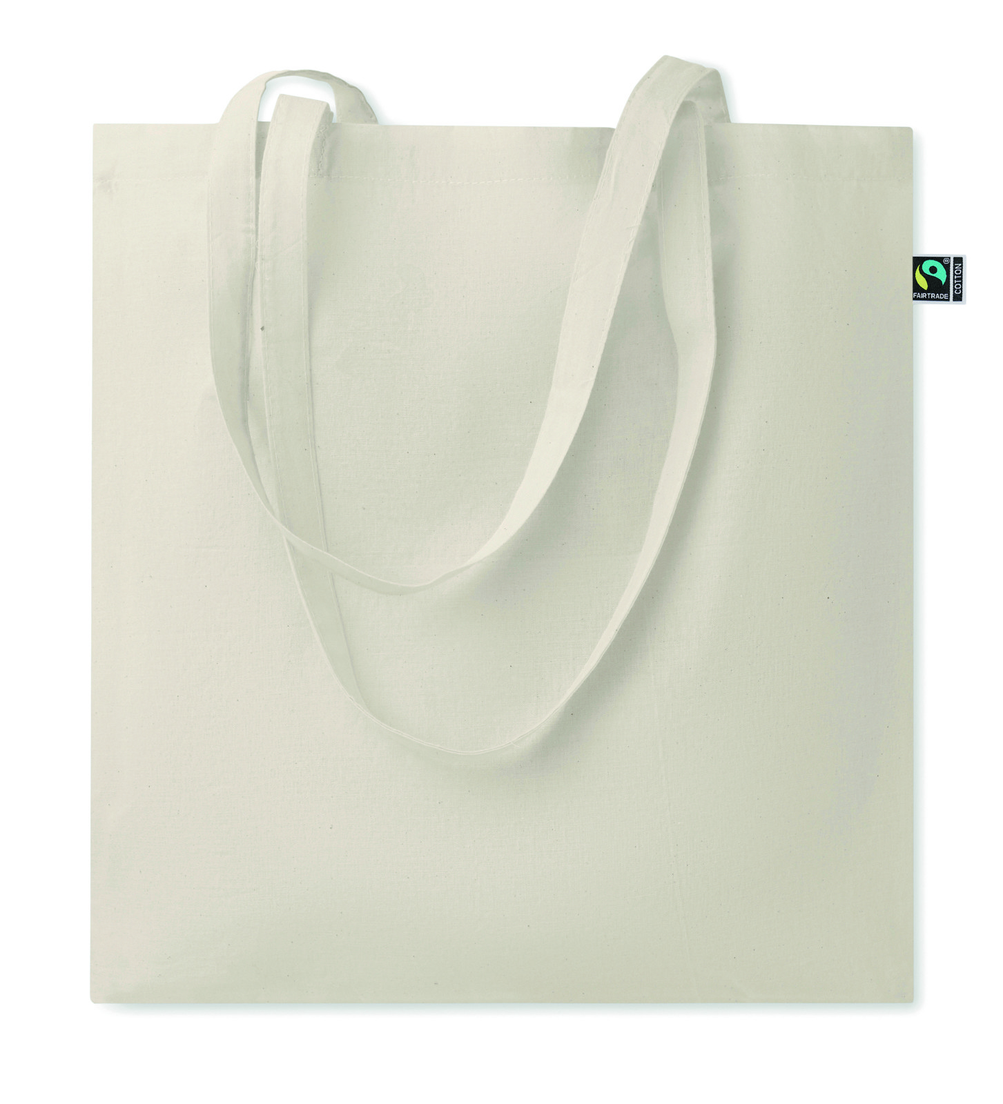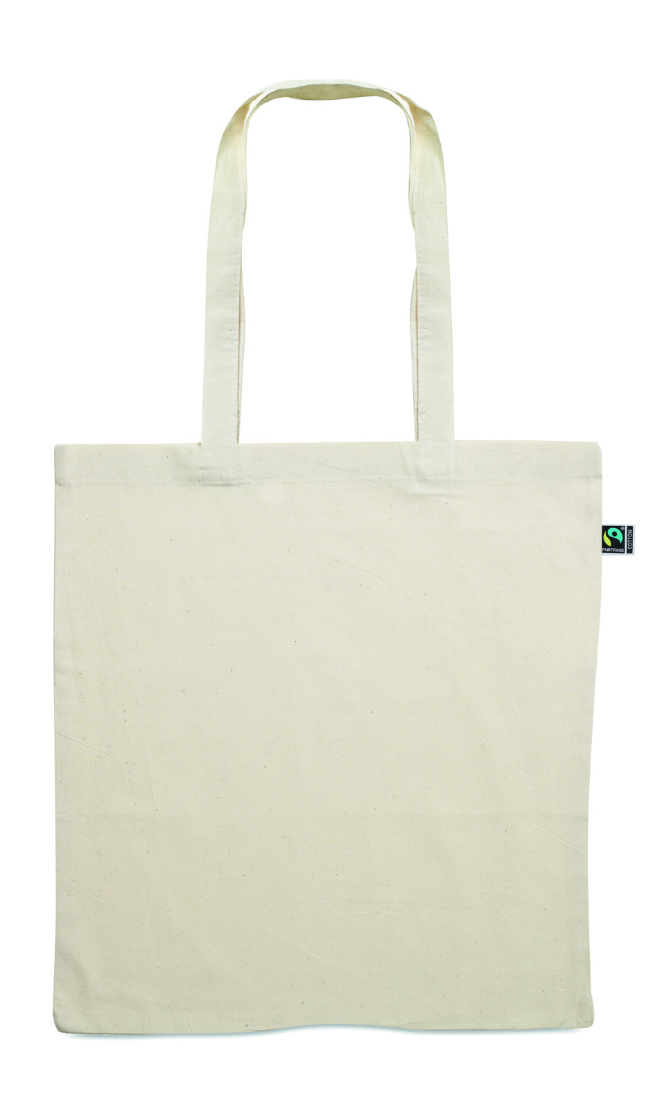 Shopper in cotone equo e solidale con manici lunghi. 140 gr/m². Questo prodotto è certificato OEKO-TEX® STANDARD 100.