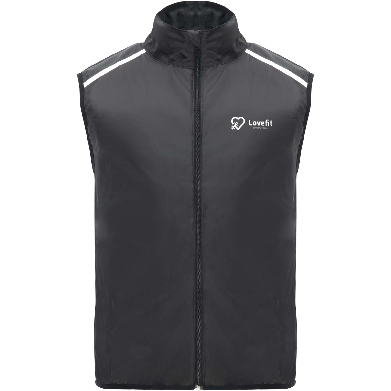 Antivento e traspirante. Zip anteriore con protezione per il mento abbinata. Orlo elasticizzato sul giromanica e sulla parte inferiore. Parte inferiore del retro in tessuto microforato. Dettagli fluorescenti sulla parte superiore, anteriore e posteriore. Tasca con fascia elastica per riporre il gilet e da indossare al polso. Etichetta rimovibile.