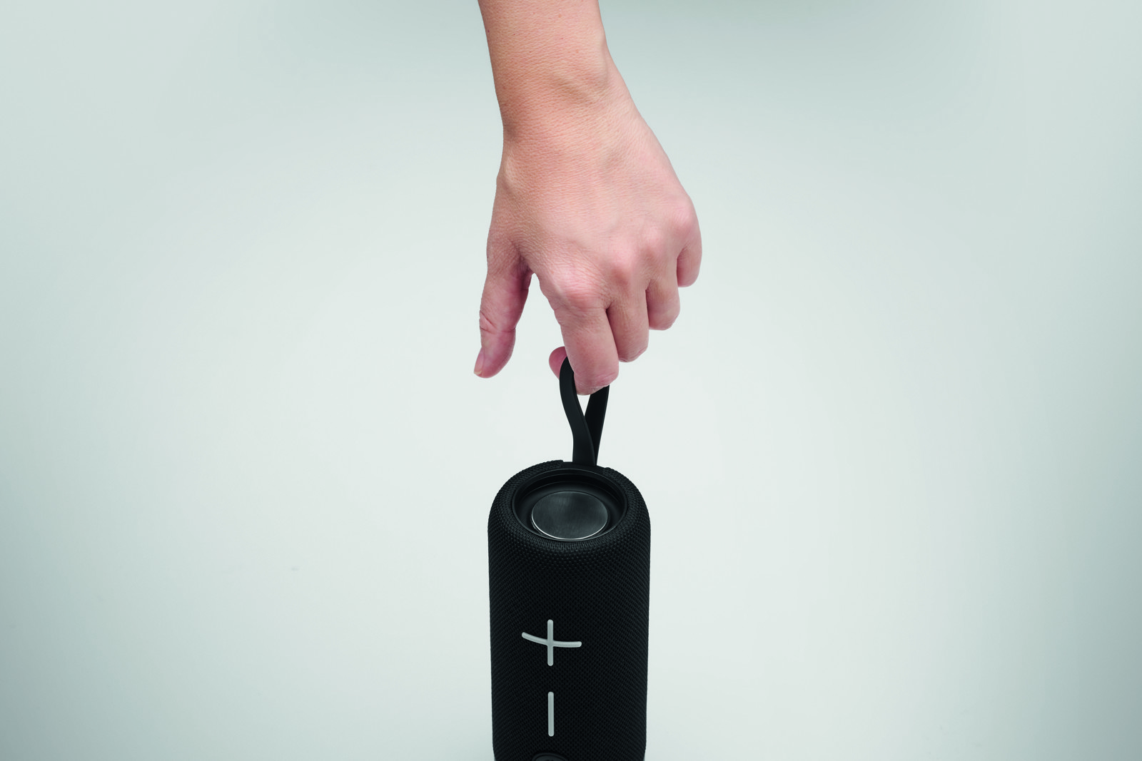 Speaker wireless 5.3 in ABS con finitura gommata e LED. Include una porta per SD e un cavo AUX/USB. Batteria ricaricabile al litio da 450mAh.Microfono per parlare al telefono. Autonomia circa 3h.