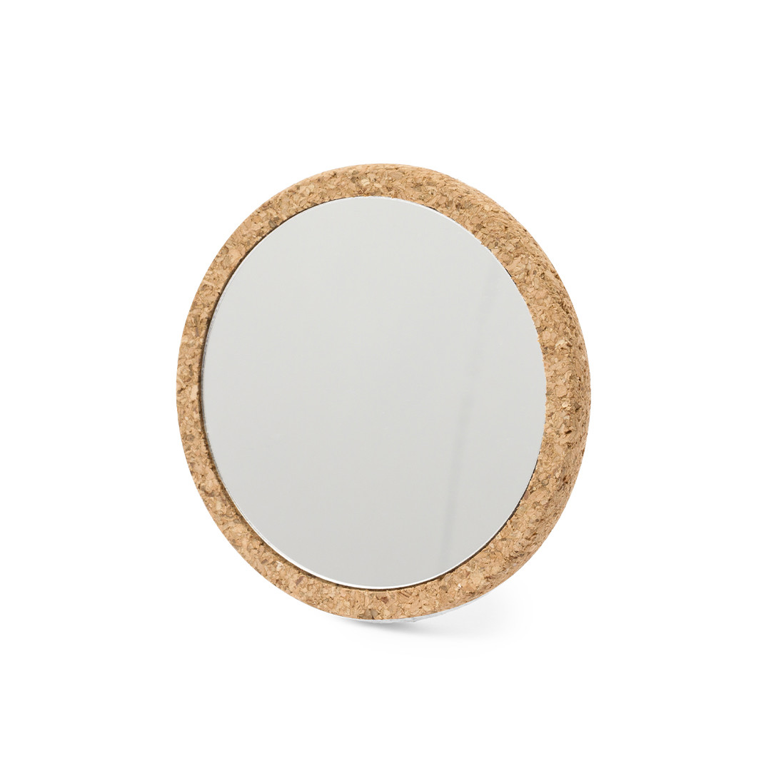 Specchio 1X in sughero. Pratico specchio portatile rivestito in morbido sughero e presentato in una scatola individuale dal design kraft.