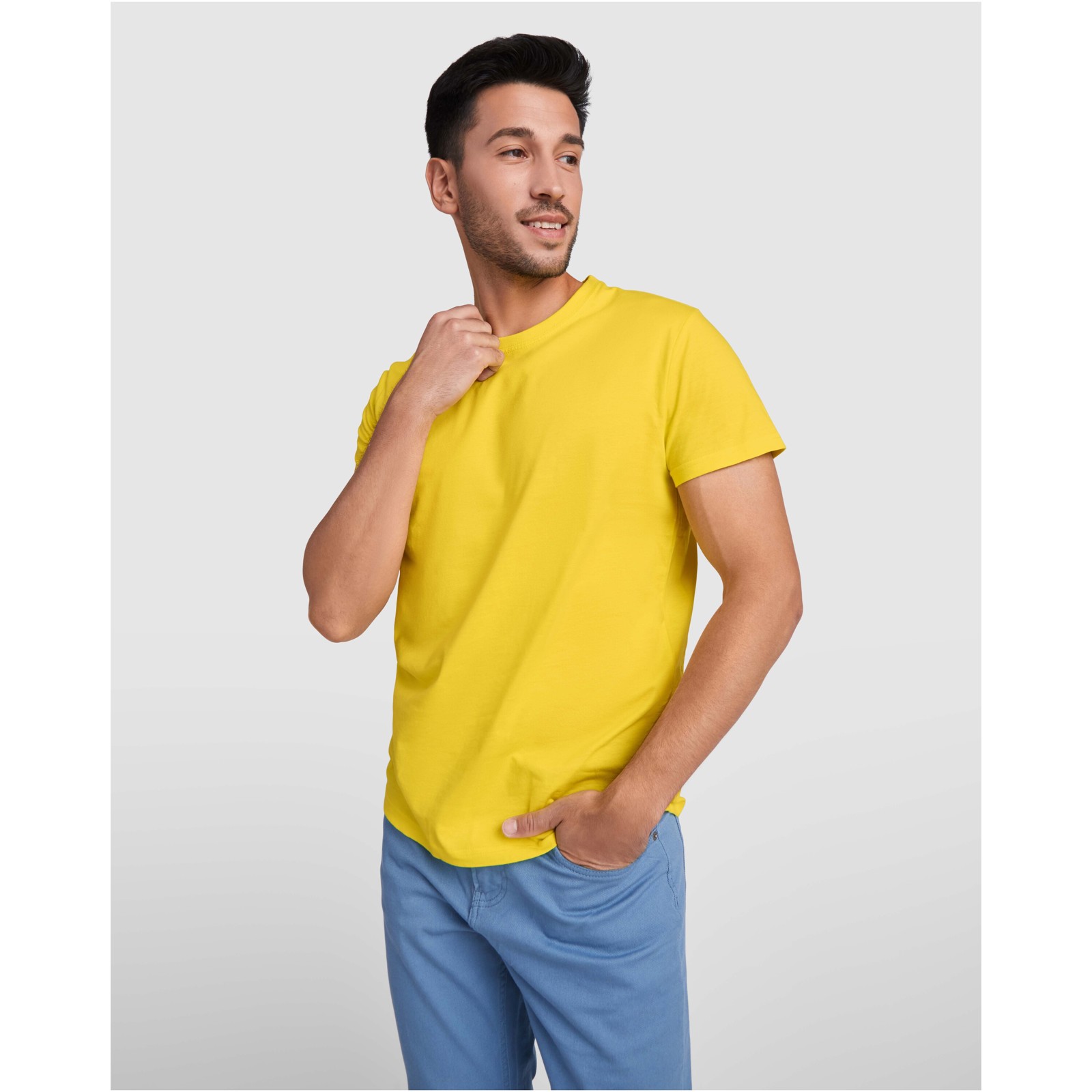 T-shirt a maniche corte con girocollo a 4 strati e cuciture coperte e rinforzate su collo e spalle. Cuciture laterali. Le taglie 4XL e 5XL sono disponibili solo in alcuni colori. Etichetta rimovibile.