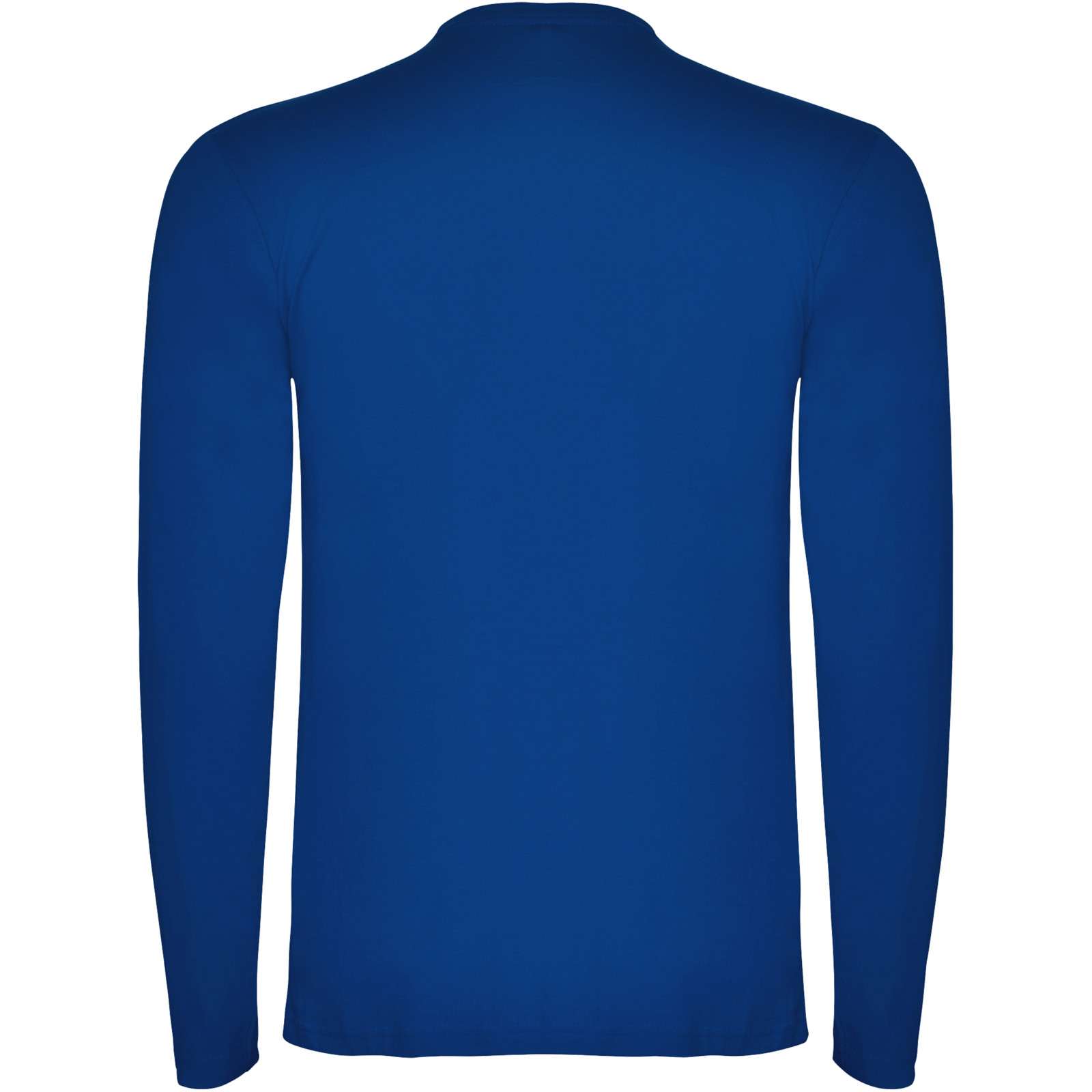 T-shirt a maniche lunghe in tessuto tubolare e girocollo a 4 strati. Copri cuciture rinforzate sul colletto e sulle spalle. Senza polsini. Etichetta rimovibile. Design tubolare per le taglie da adulti e cuciture laterali per le taglie da bambino. Il modello è alto 185 cm ed indossa una taglia L.