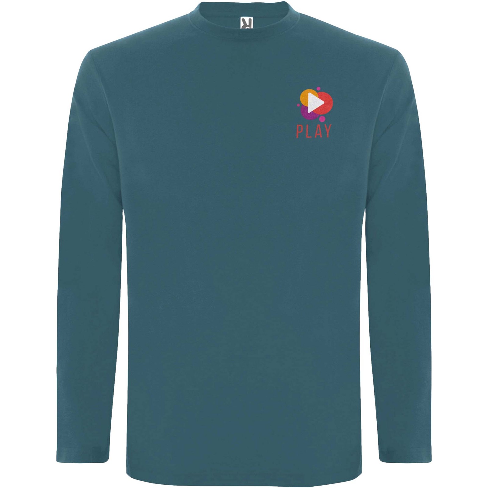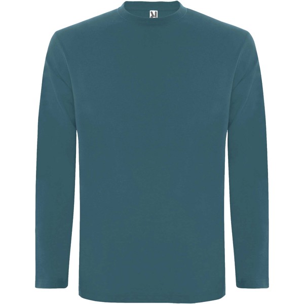 T-shirt a maniche lunghe in tessuto tubolare e girocollo a 4 strati. Copri cuciture rinforzate sul colletto e sulle spalle. Senza polsini. Etichetta rimovibile. Design tubolare per le taglie da adulti e cuciture laterali per le taglie da bambino. Il modello è alto 185 cm ed indossa una taglia L.