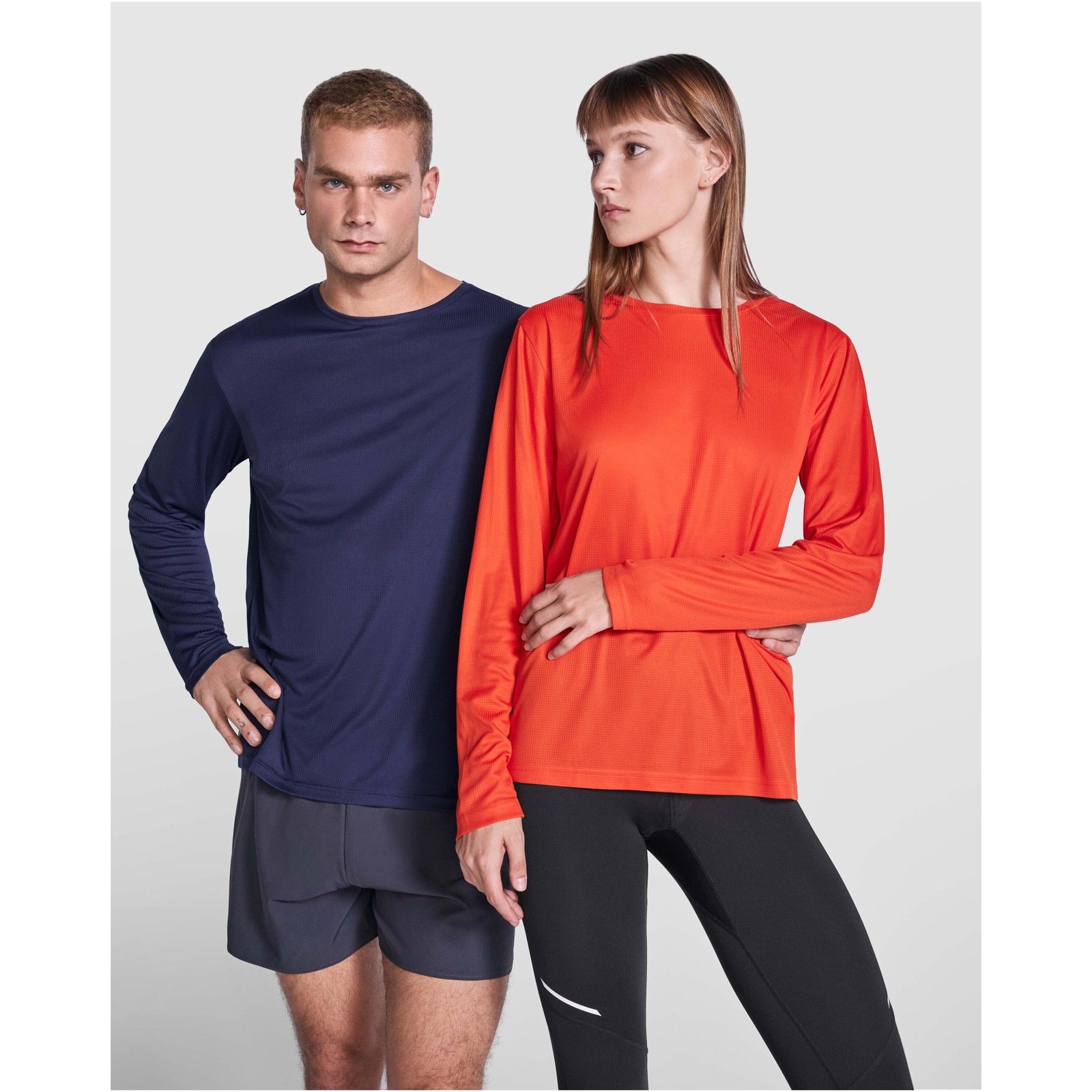 T-shirt tecnica unisex a maniche lunghe. Collo con cuciture abbinate. Orlo posteriore leggermente più lungo di quello anteriore. Cuciture laterali spostate in avanti.