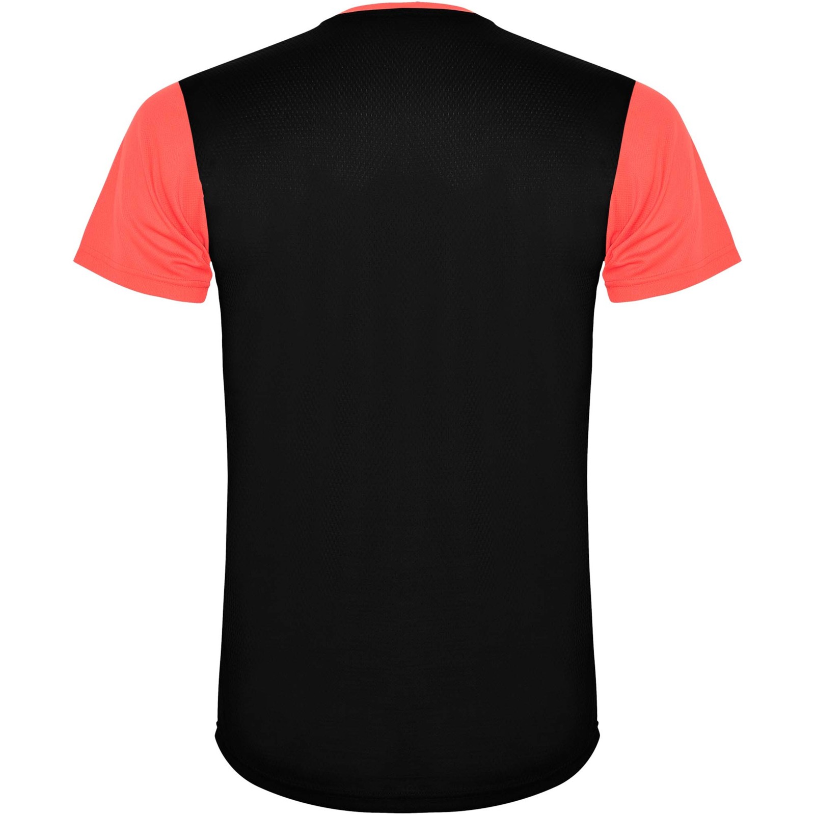 Tessuto tecnico traspirante che si asciuga rapidamente. Girocollo. Combinazione di due tessuti in poliestere sul retro e sulle spalle. Tessuto a occhio di pernice sul davanti e tessuto mesh 3D traspirante sul retro. Tessuto realizzato per assorbire l'umidità. Cucitura decorativa a zigzag con impuntura sui lati e sulle spalle. Parte posteriore leggermente più lunga. Etichetta rimovibile.