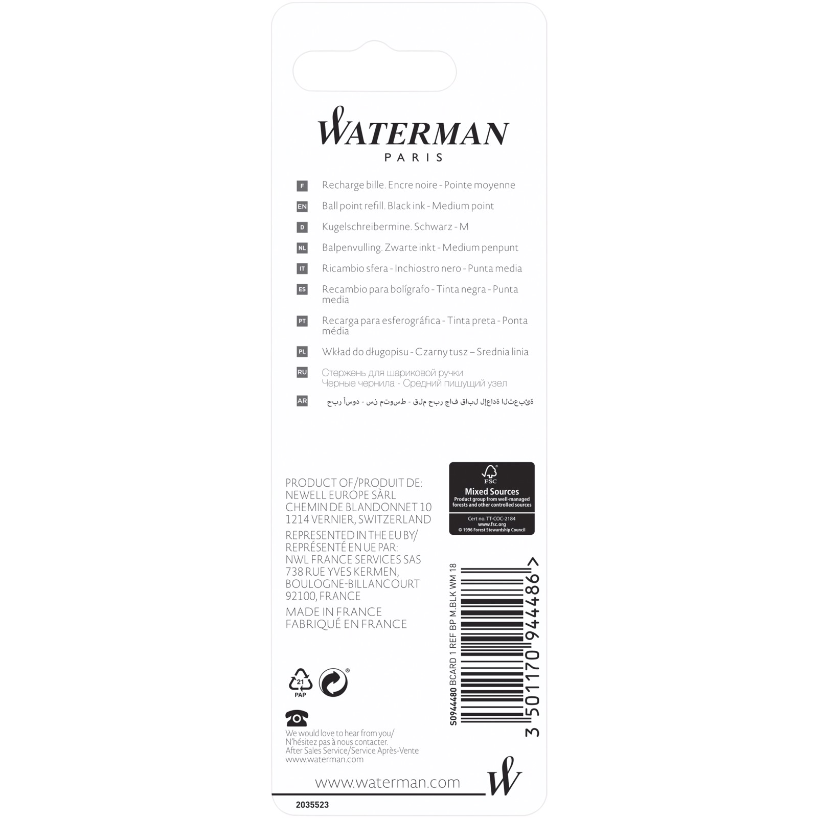 Waterman refill penna a sfera (inchiostro nero)